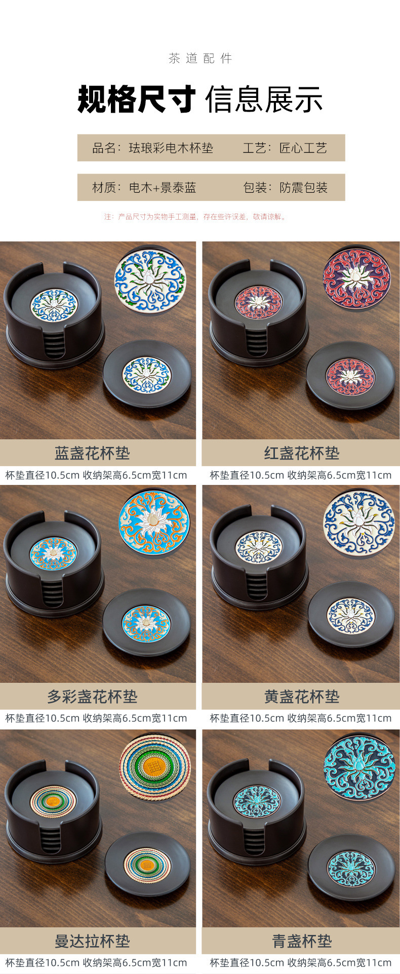 Бакелітові підставки підсклянники 6 шт., підставки для чаю, для чайної церемонії в японському стилі кунг-фуГотово до відправки