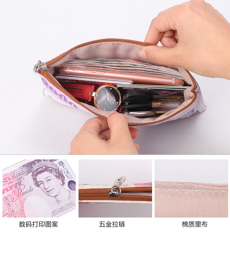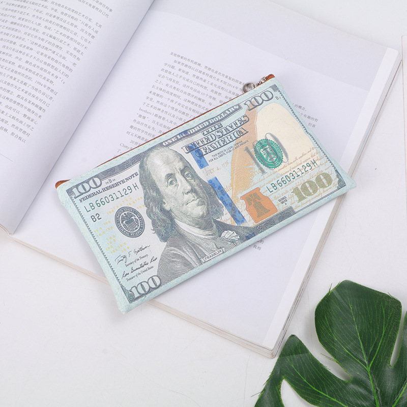 Гаманець косметичка на змійці з принтом грошей, 100 доларів США, євро та ін. 20х11х1см
