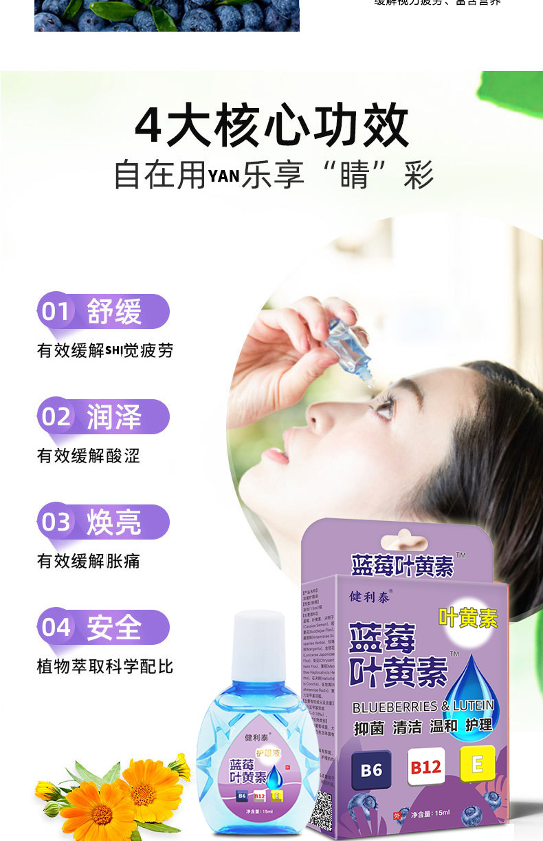 Глазурні краплі "Lutein + B6" 15 мл (чорниця + Б6), очні краплі з чорничним лютеїном
