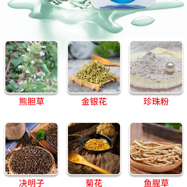 Склад: корінь дудника китайського, хризантему, перлова пудра, бутон жимолості, гіалоплазматична кислота, таурин, ведмежа жовч.