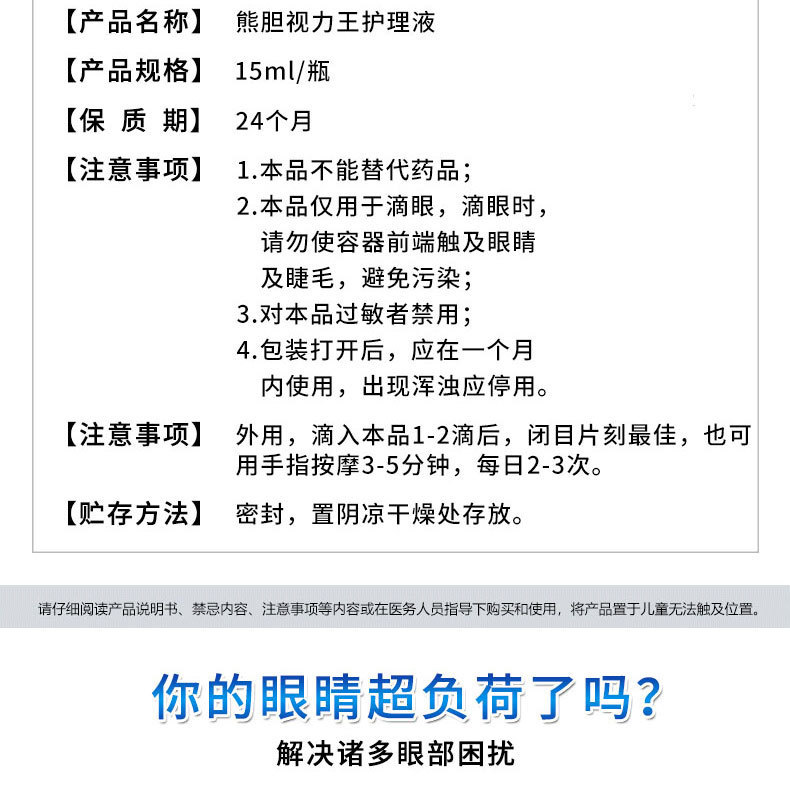 Глазурні краплі Bear Bile Vision King Eye Drops 15 мл, з ведмежею жовчкою від катаракти та глаукоми