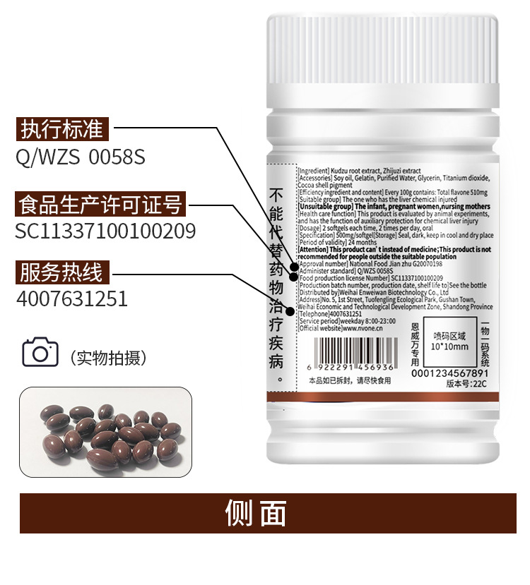 Склад: екстракт гонії солодкої, екстракт кореня Кудзу, олія бобів, пігмент оболонки плодів какао, желатин, гліцерин, вода.
