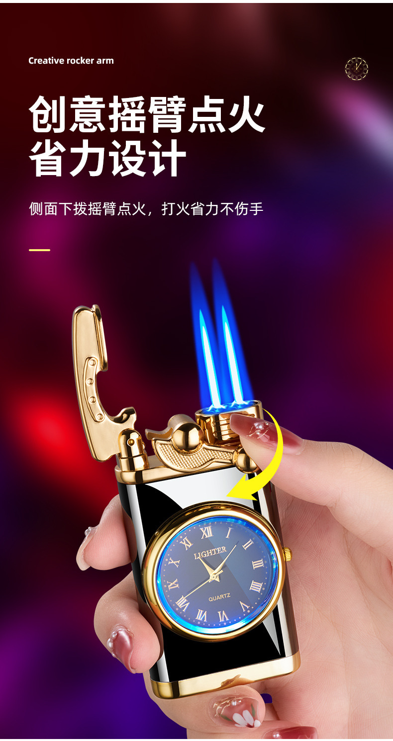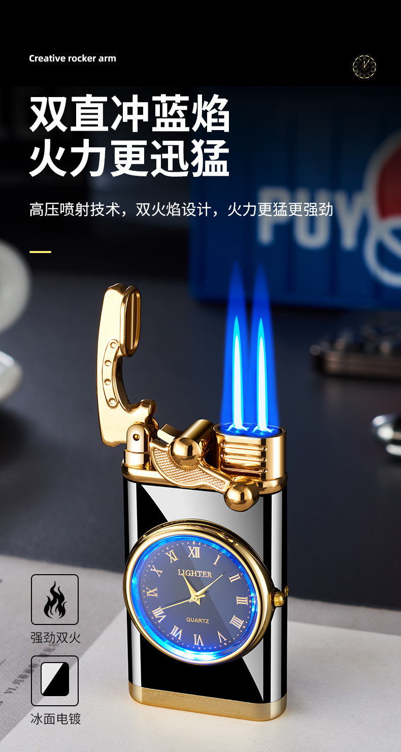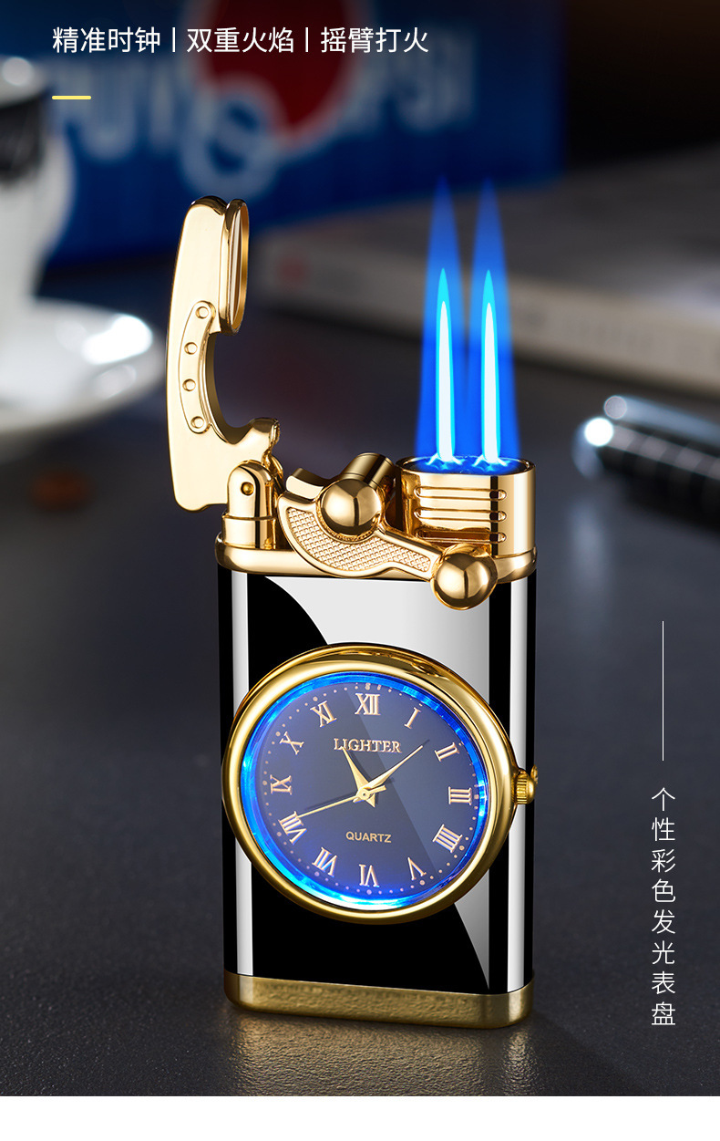 Запальничка з подвійним турбо полум'ям, double torch jet із золотими кварцовими годинниками
