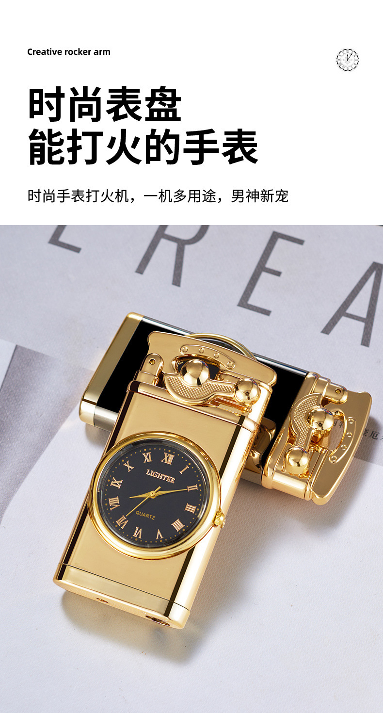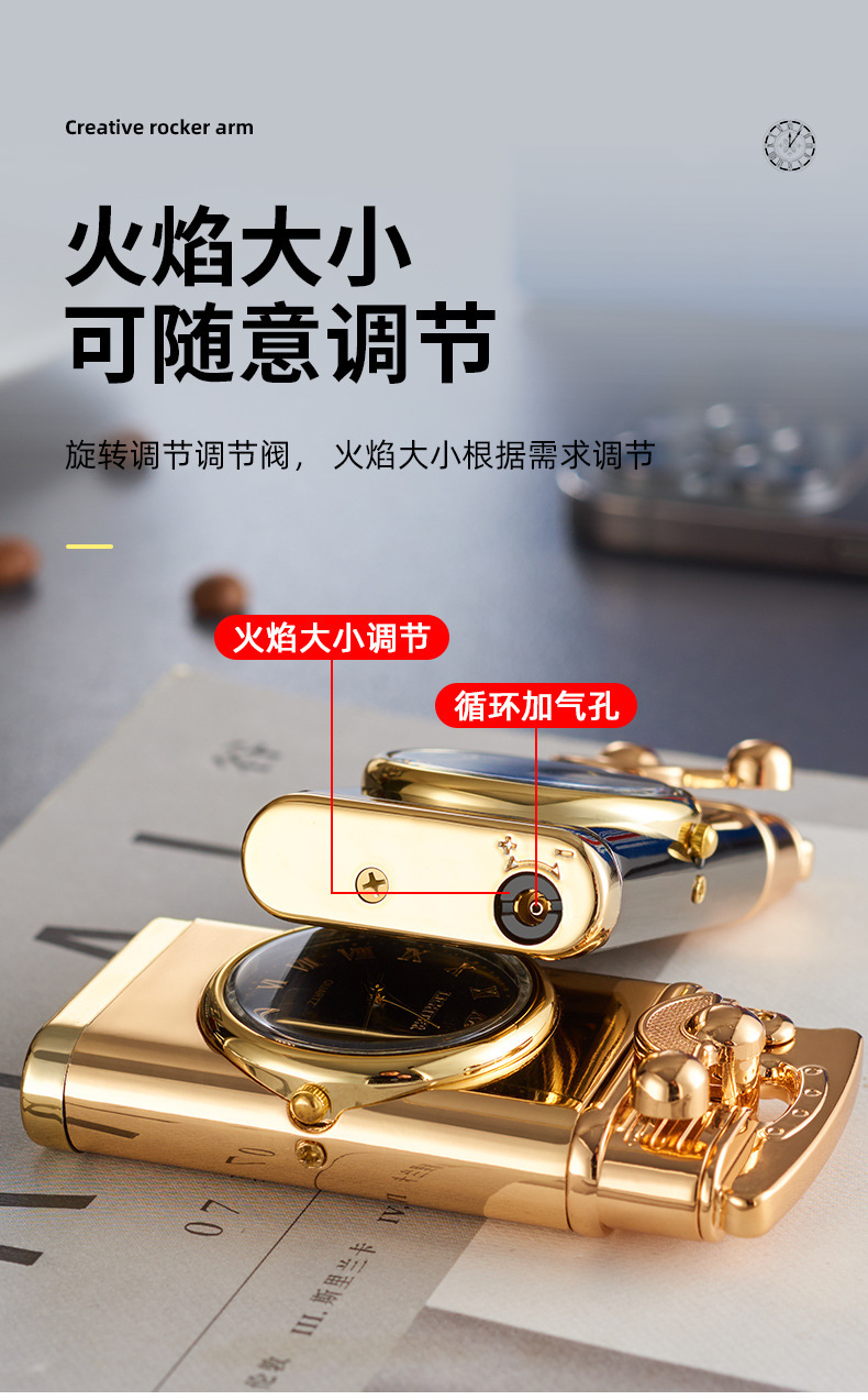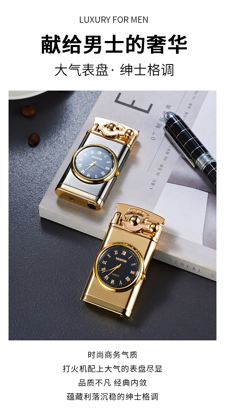 Запальничка з подвійним турбо полум'ям, double torch jet із золотими кварцовими годинниками