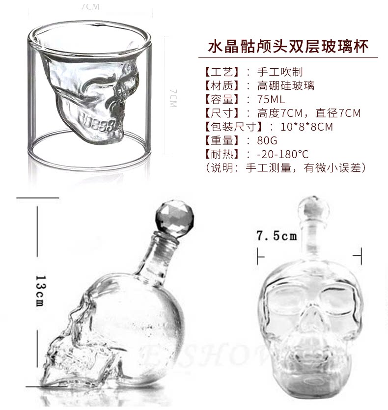 • Стакан для віскі 150 мл Череп, з подвійними стінками/3D чарка склянка для алкогольних напоїв/Рюмка-череп, фото 4