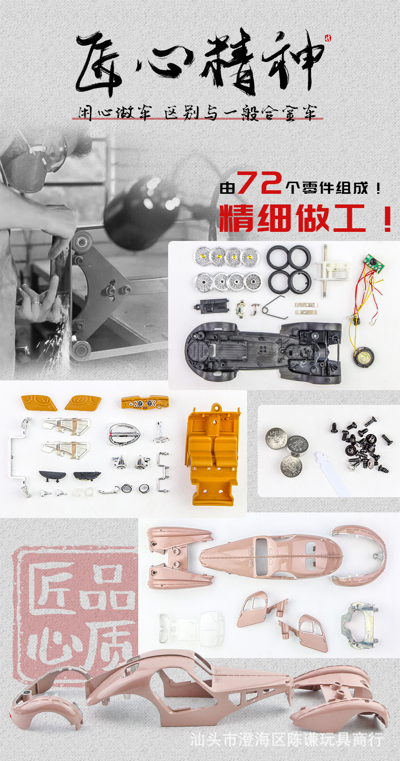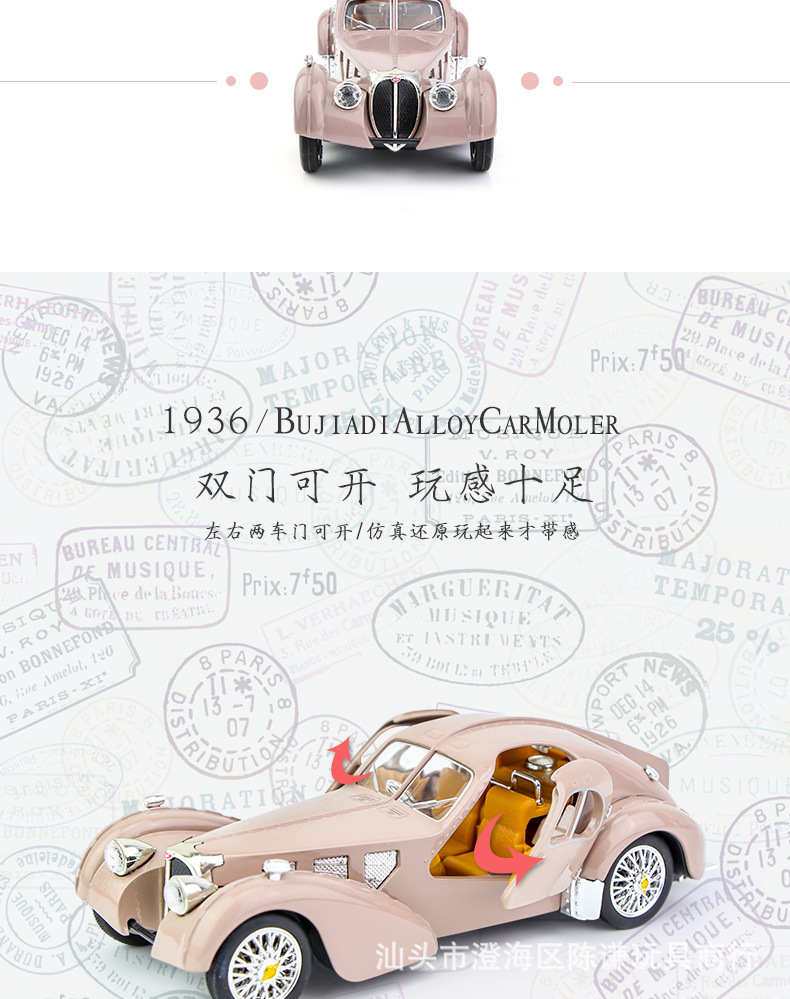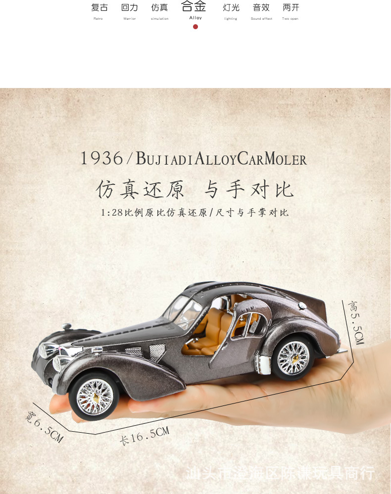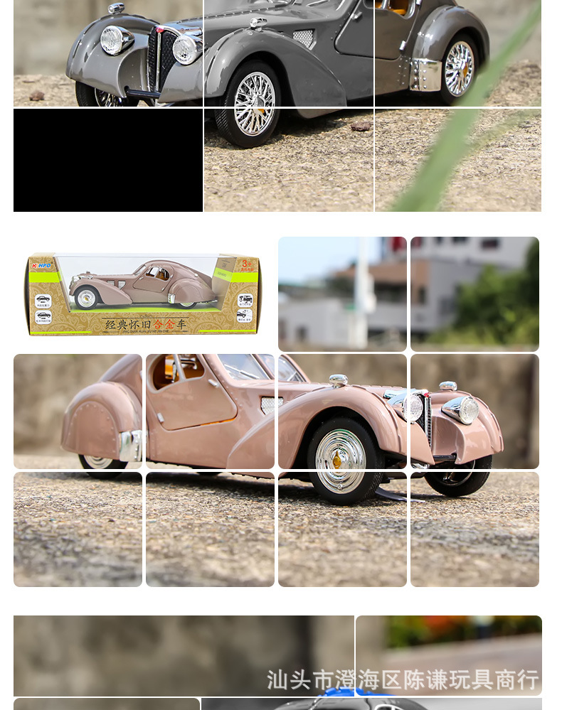 Ретро-автомобіль незвичайного вигляду синього кольору — втілення стилю, елегантності та розкоші. Іграшка виготовлена з безпечних, нетоксичних матеріалів, здатних зашкодити. Корпус — металевий, колеса — гумові, інші елементи на корпусі та всередині — пластикові. Іграшка виглядає реалістично.