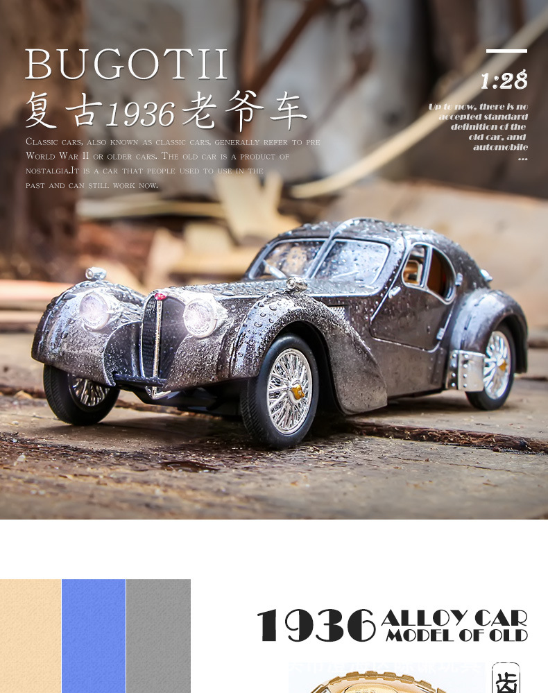 Модель ретро автомобіля Bugatti Atlantic синій (1936) Бугатті 1936г Metal Wecer