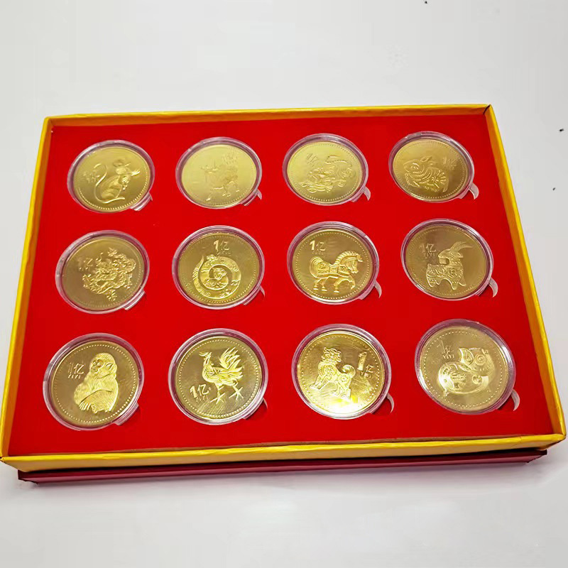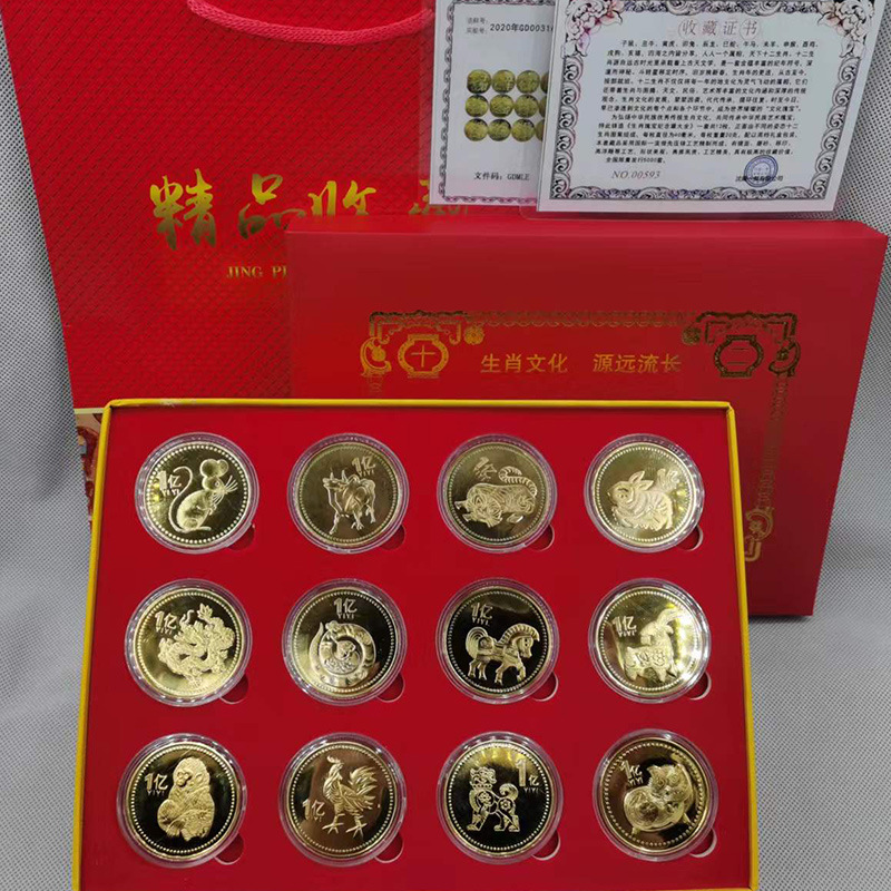 Сувенірний набір монет дванадцять зодіаків подарункова коробка, сертифікат, з тваринами 12 монет