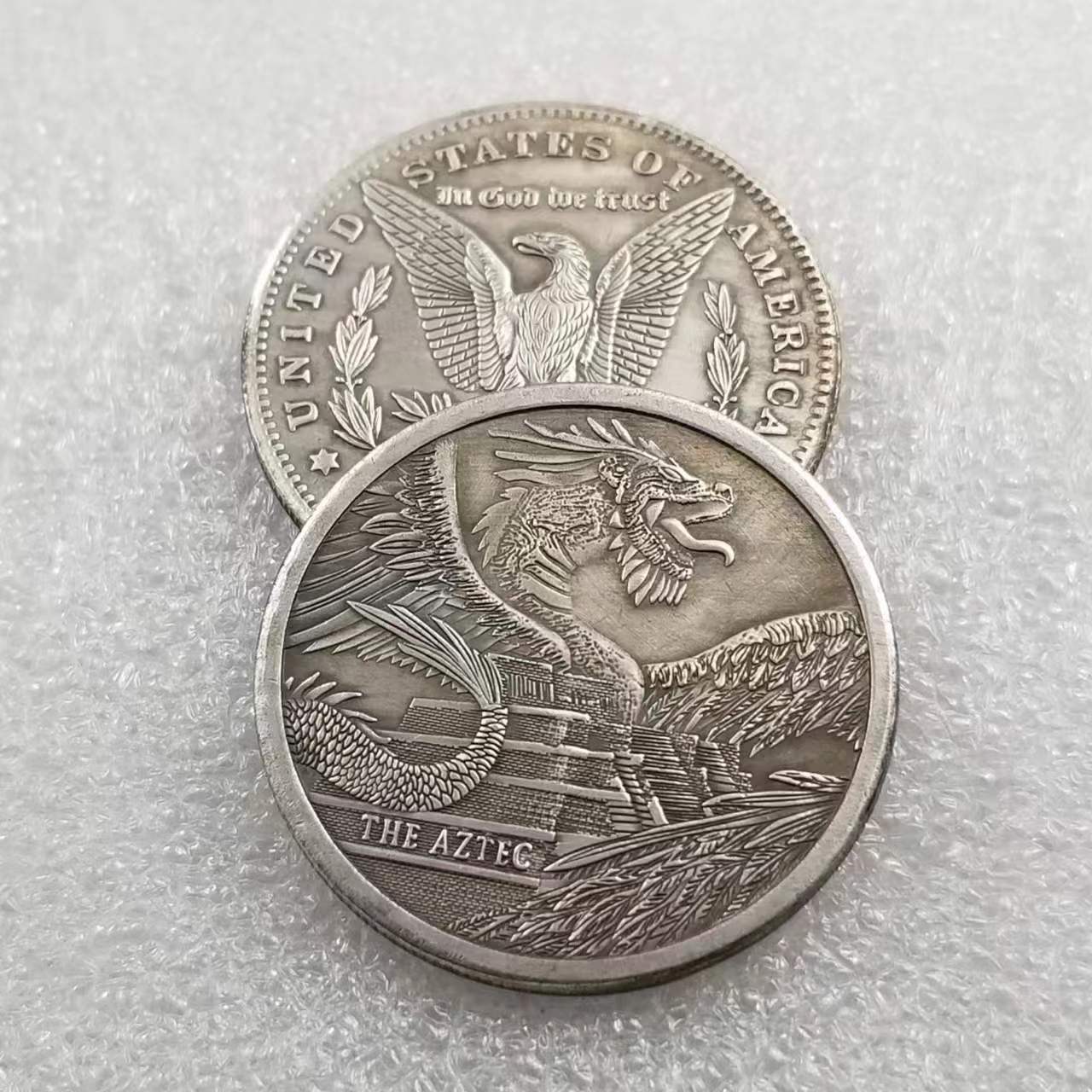 • Сувенір монета долар США "Дракон і піраміди Ацтеків". Hobo Coin American Morgan, фото 2