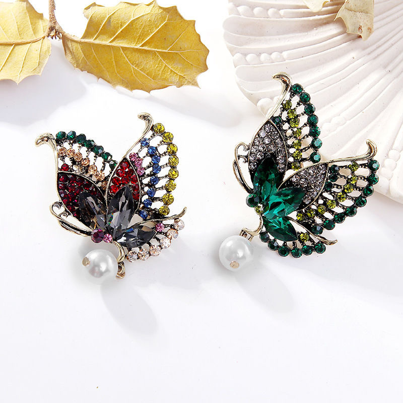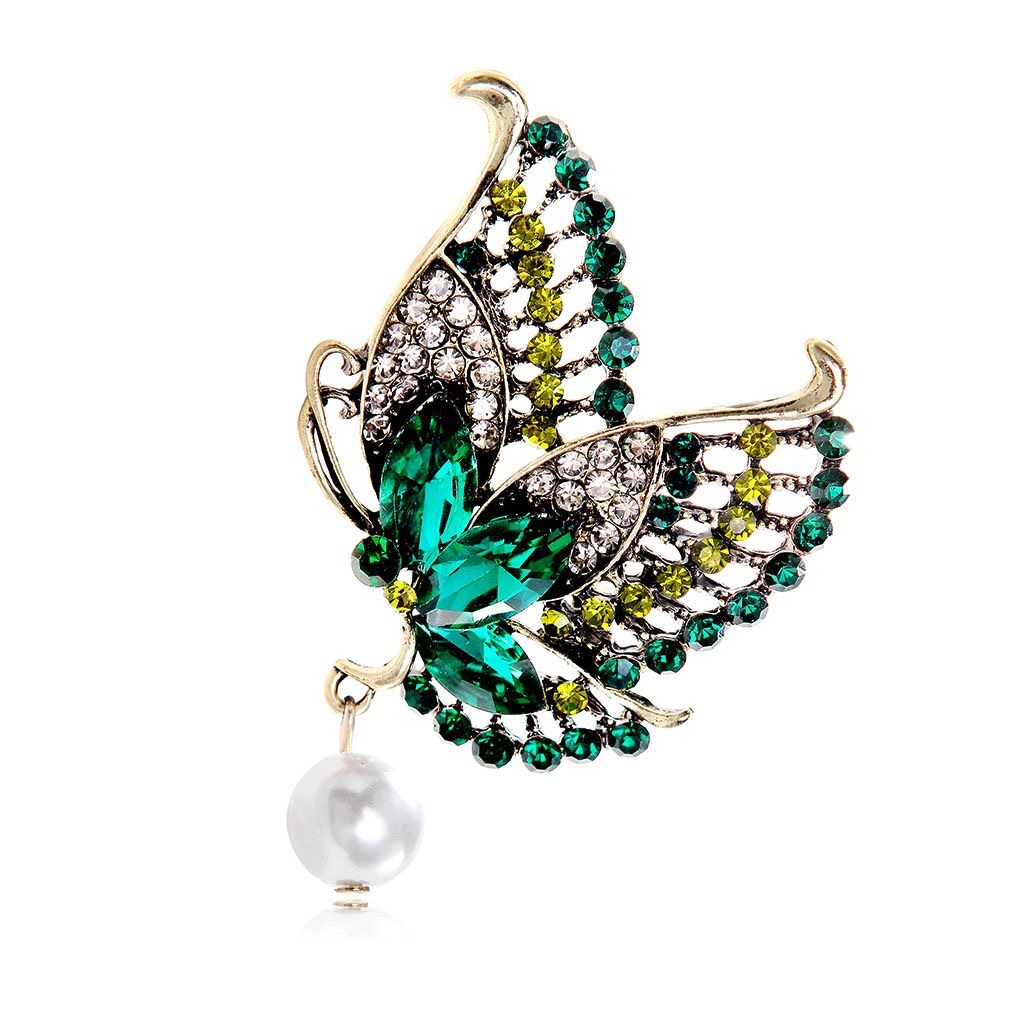 Брошка "Метелик із перлами", біжутерія з кристалами (5х4 см), елегантна брошка для костюма, брошка