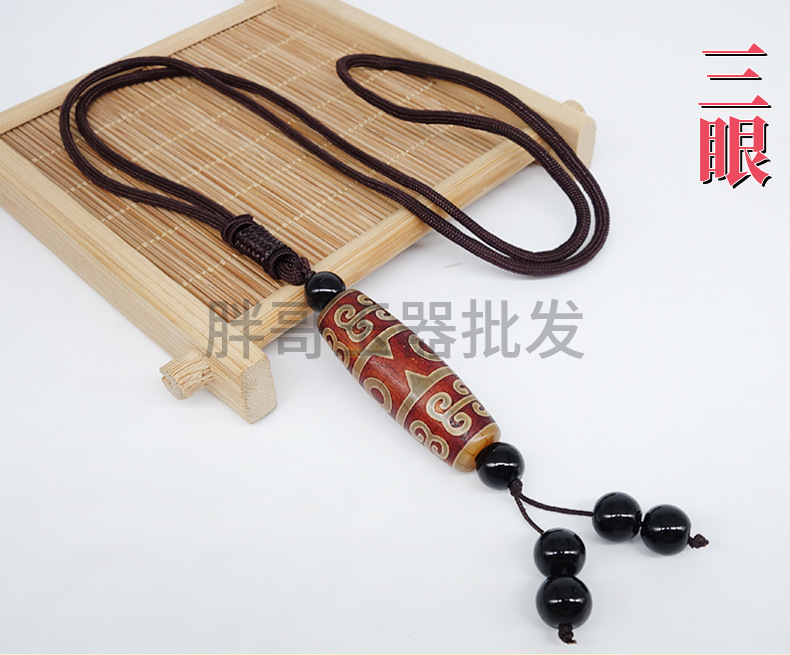 Підвіска коричневі намистини Дзі, намиста, намисто, намисто, на шнурку 4х1,8 см. багатства й несподіваної фінансової удачі
