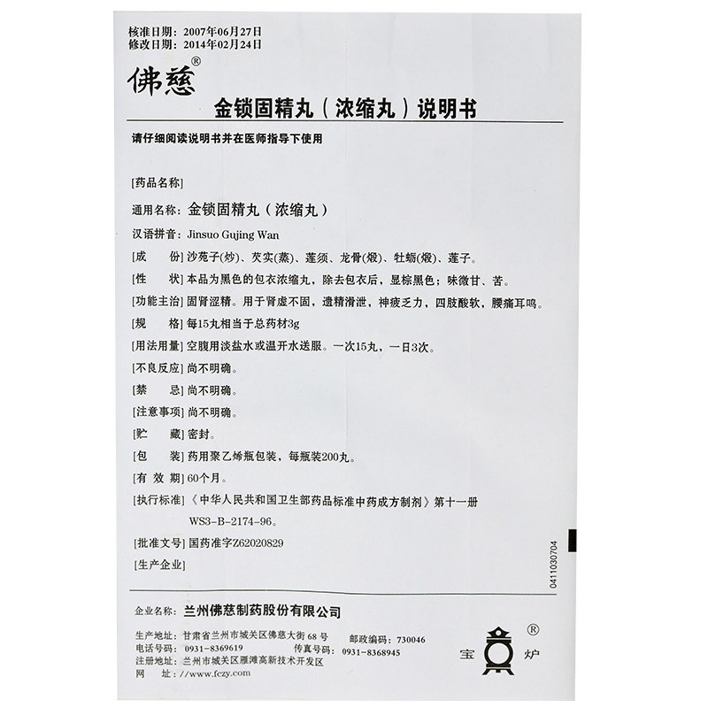 Пилюлі Цзинь Со Гу Цзин Вань (Jin Suo Gu Jing Wan, Jinsuo Gujing Wan) 200 шт. підлогова дисфункціяНемає в наявності