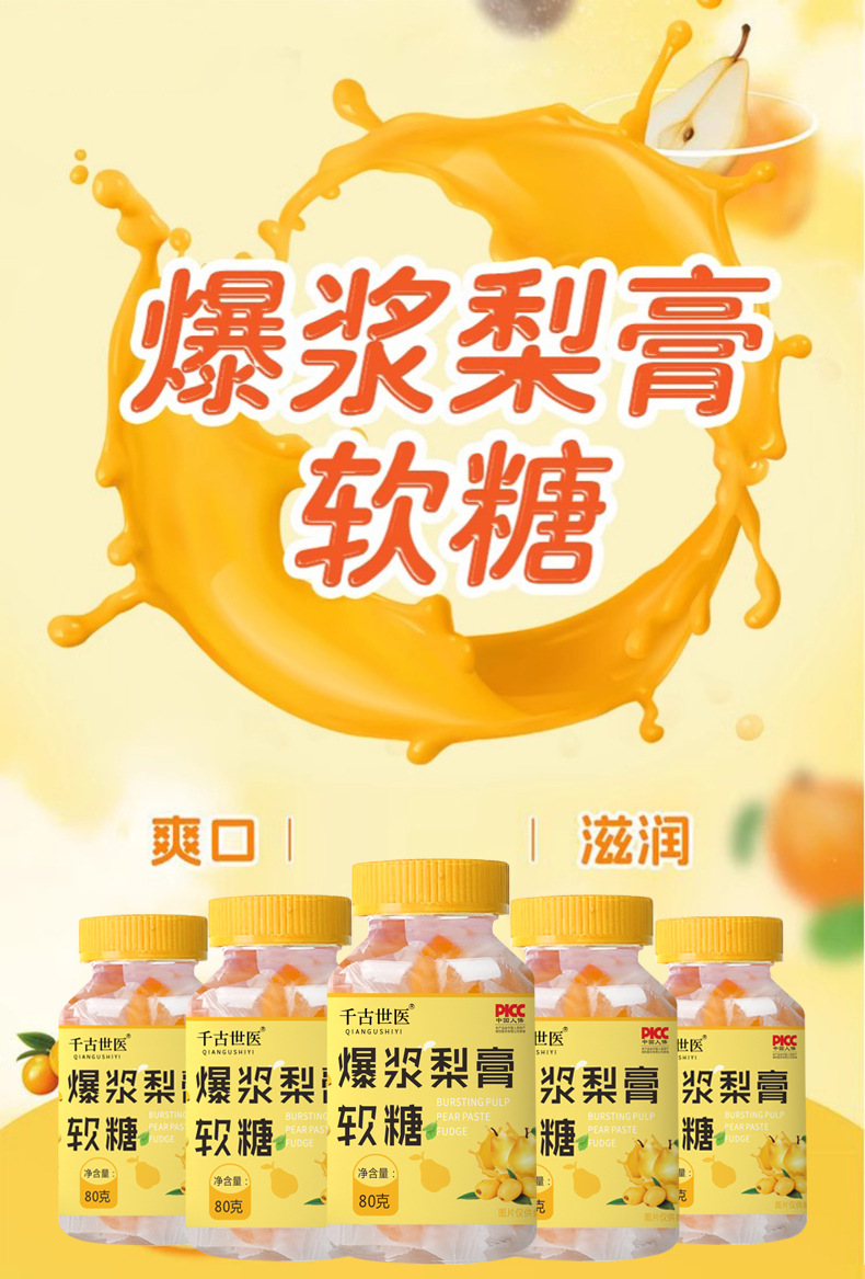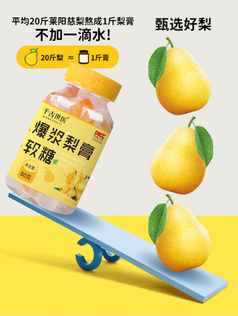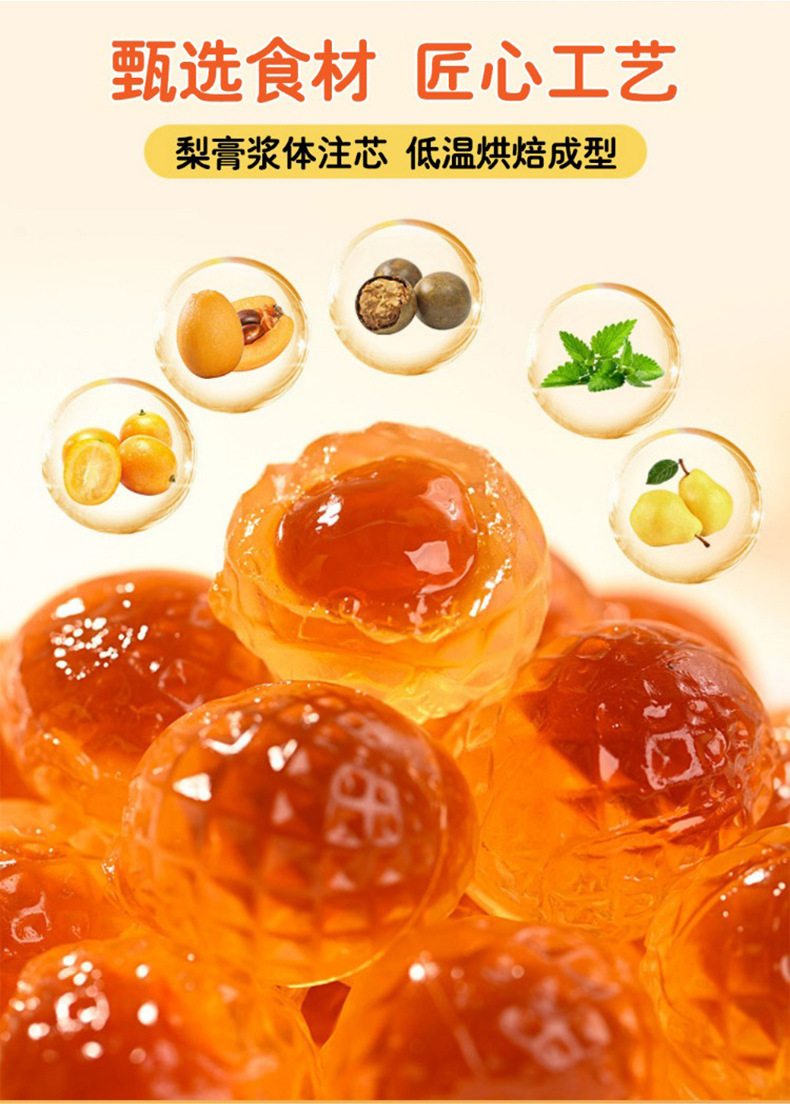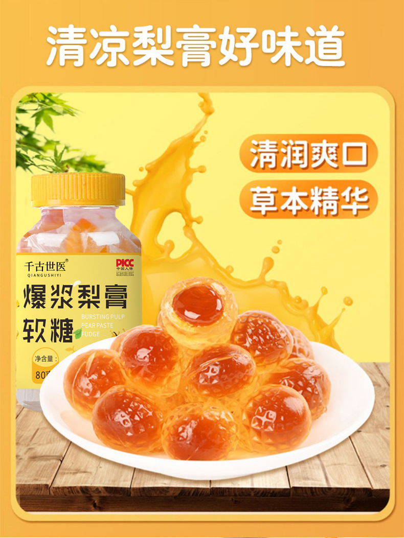 Мармеладні Грушеві Цукерки від кашлю ґрунтуються на екстрактах лікарських фруктів і рослин. Швидко полегшує раптовий кашель (як «сухий», так і «мокрий»), що супроводжується нежитю або закладеністю носових пазух.