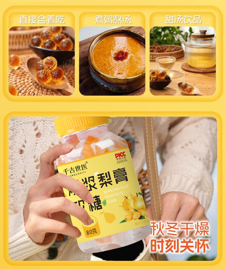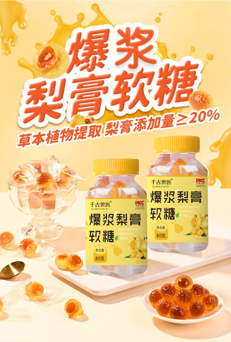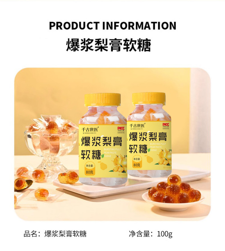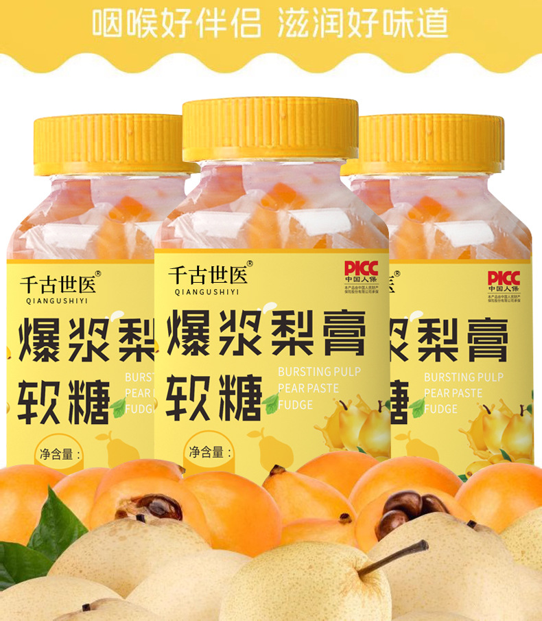 Мармеладні Грушеві Цукерки від кашлю ґрунтуються на екстрактах лікарських фруктів і рослин. Швидко полегшує раптовий кашель (як «сухий», так і «мокрий»), що супроводжується нежитю або закладеністю носових пазух.