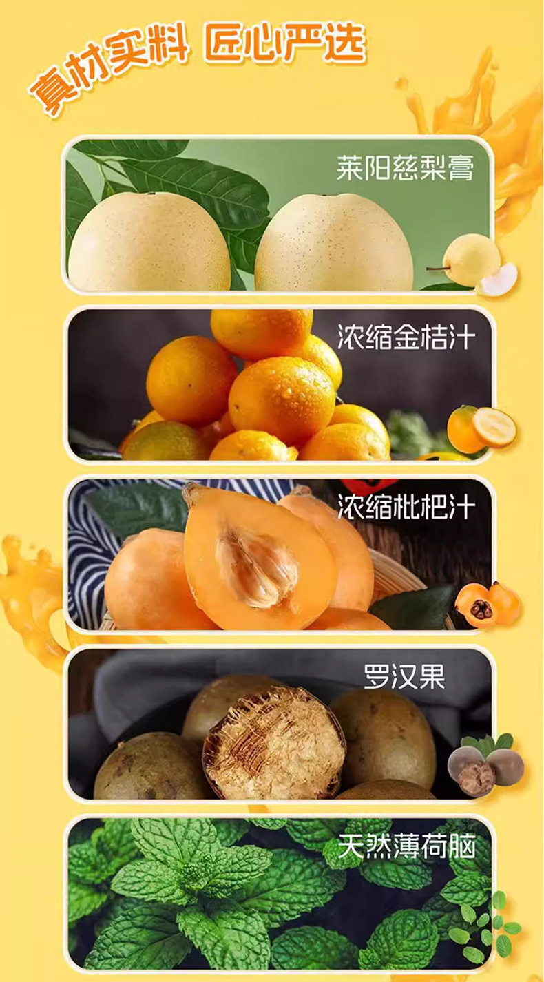 Склад: вода, мед, сироп фруктози, м'ята, плоди мушмули, груша, сік кумквату, солодка, лілія, лимон, сорбіт калію, натрій, карбоксиметилцелюлоза.