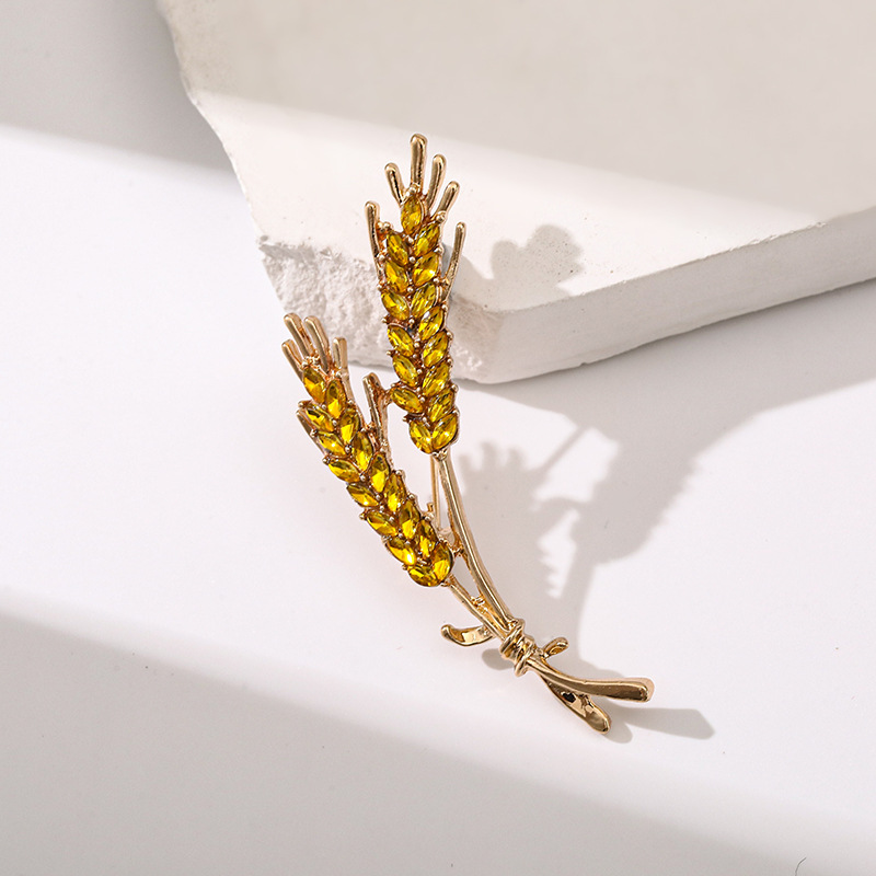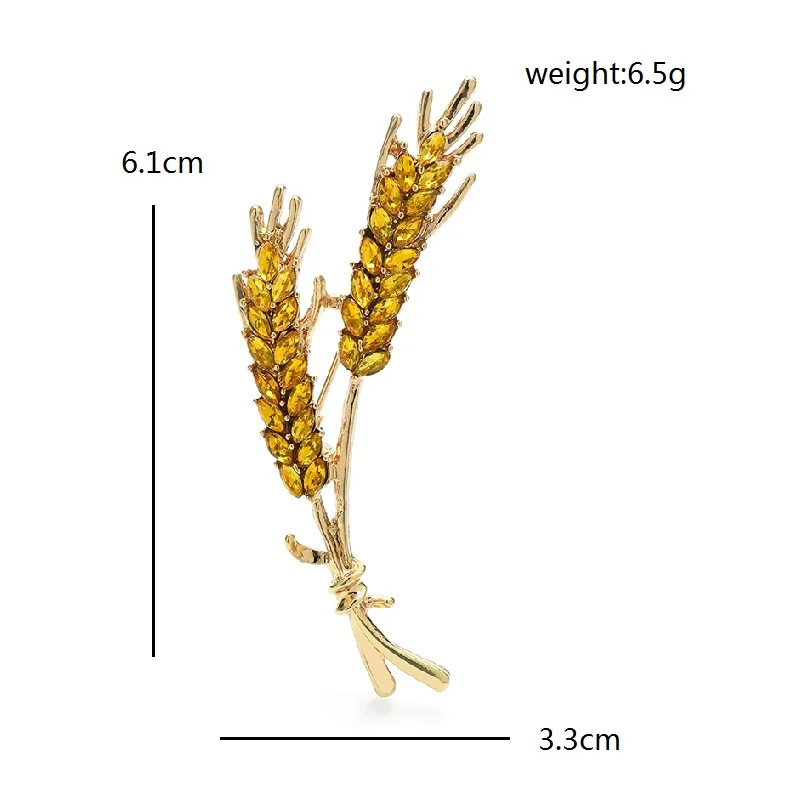 Брошка жіноча — це вишукана прикраса, яка чудово доповнить будь-який образ. Вона виготовлена з натурального металу золотистого кольору та має форму Колоска пшениці. Довжина броші становить 6 см. Вона прикрашена прекрасним камінням і деталями. Ця брошка прекрасно підкреслить Ваш індивідуальний стиль і стане чудовим доповненням до Вашого образу.