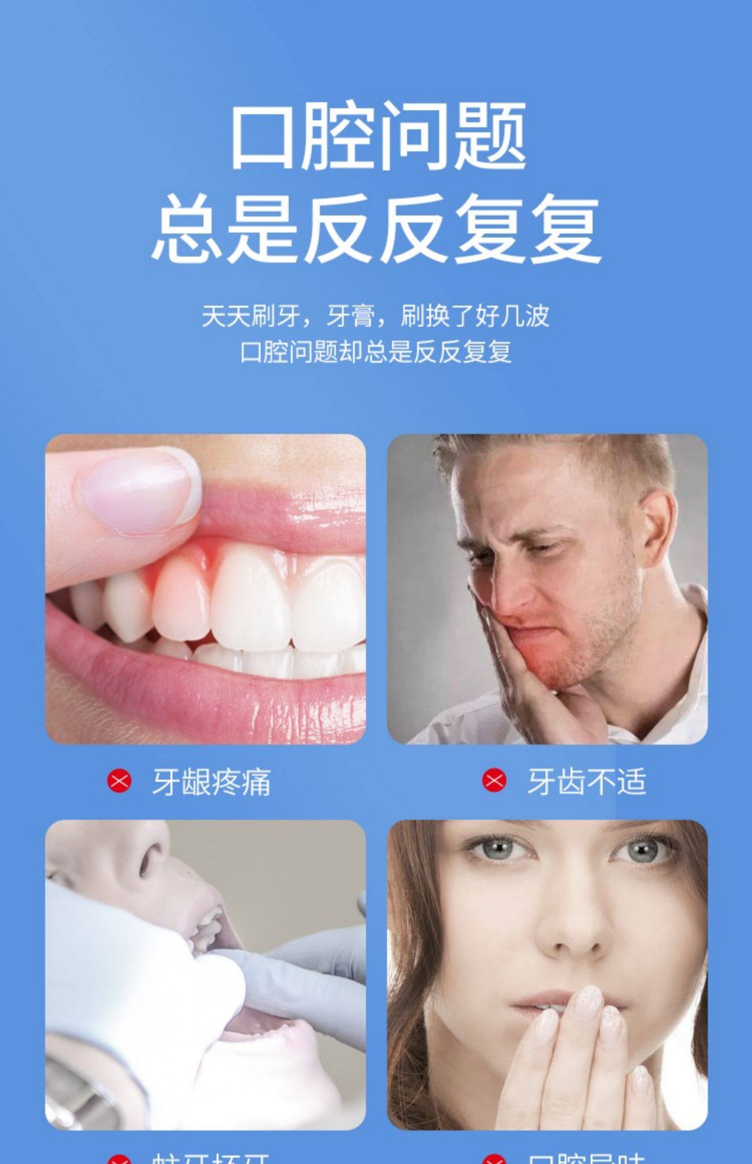 4, ефективно сприяє метаболізму порожнини рота та покращує імунітет ротової порожнини. 5. Поживні ясна запобігають зниженню ясен і продовжують термін експлуатації зубів. 6, покращує середовище порожнини рота та зменшує хвороби ротової порожнини.
