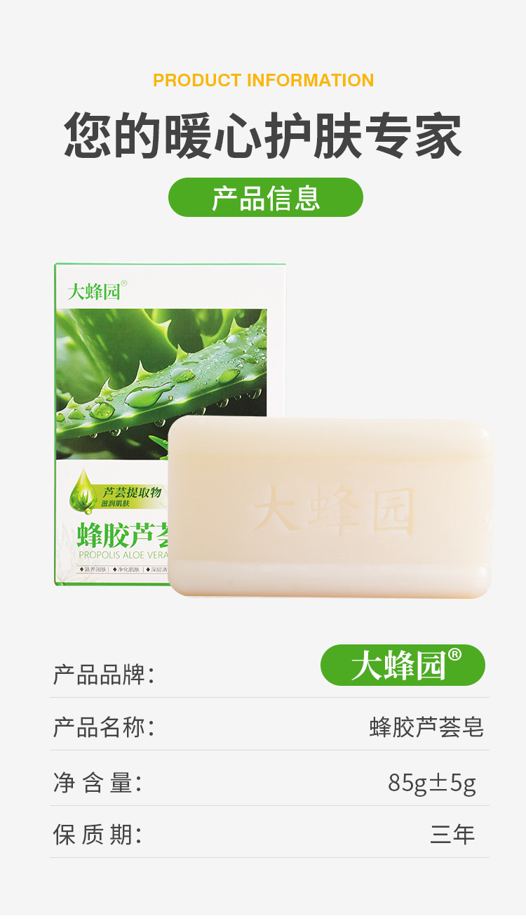 Екстракт алое вера в миль збагачений рослинними інгредієнтами, які ефективно заспокоюють і зволожують шкіру. Крім того, після регулярного використання мила шкіра стає відчутно м'якшою та ніжнішою. Вибілювальні компоненти в складі мила вирівнюють тон шкіри, роблячи її світлішою та надаючи їй сяйво. Мило очищає від зовнішніх забруднень і скупчень шкірного жиру навіть глибокі шари, тішачи володарку зволоженим і оксамитовим станом шкіри, прополіс захищає її від негативного впливу зовнішніх чинників.