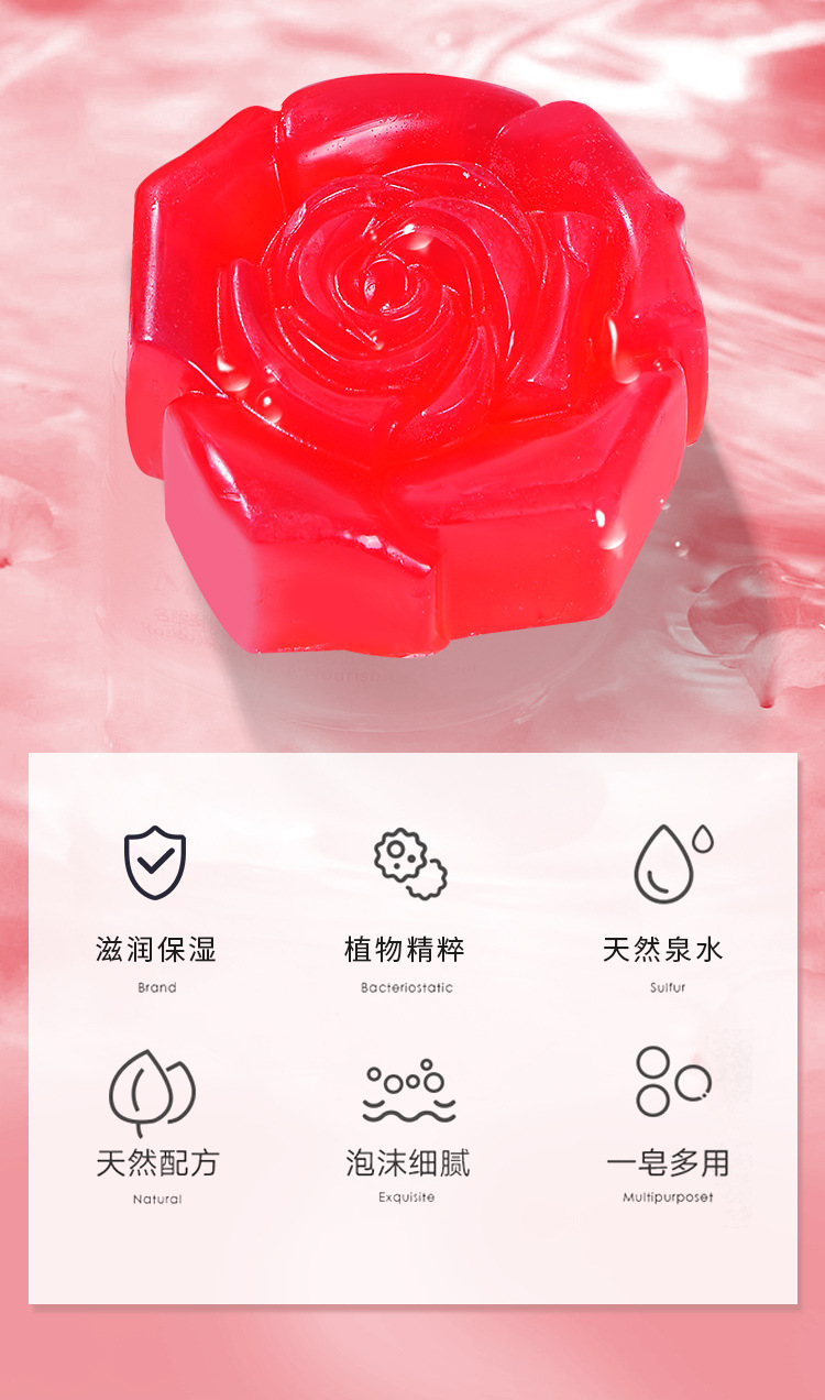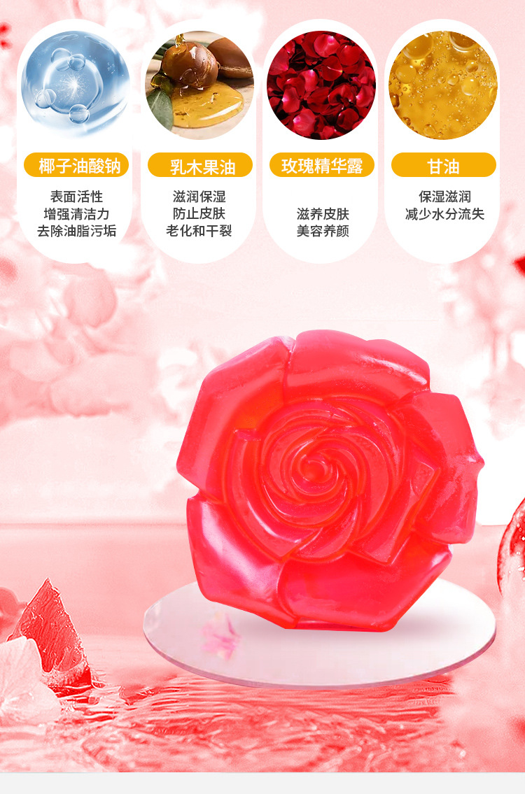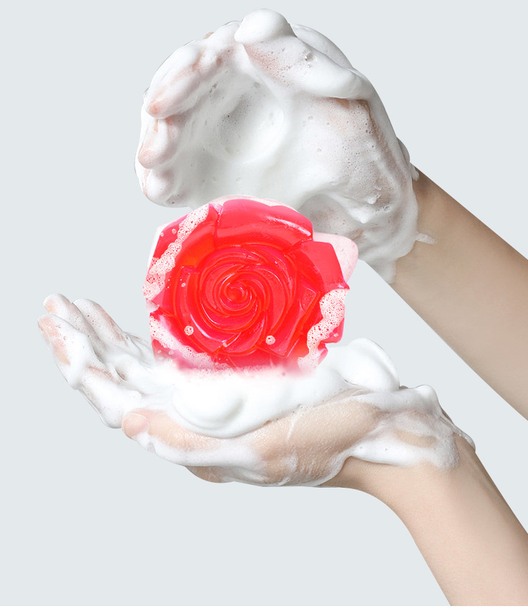 1. Природні інгредієнти: Мило містить ефірні олії пелюсток ароматних троянд, які надають йому неповторного вигляду та догляду за шкірою.