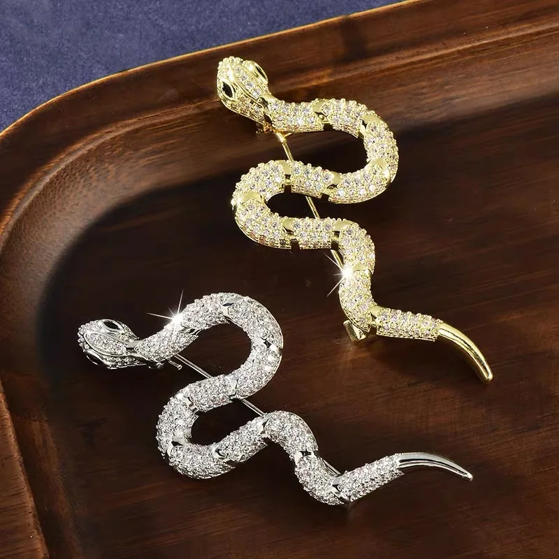 Брошка у формі білої змії, шпилька Символ 2025 г з імітацією кристала та стразами.