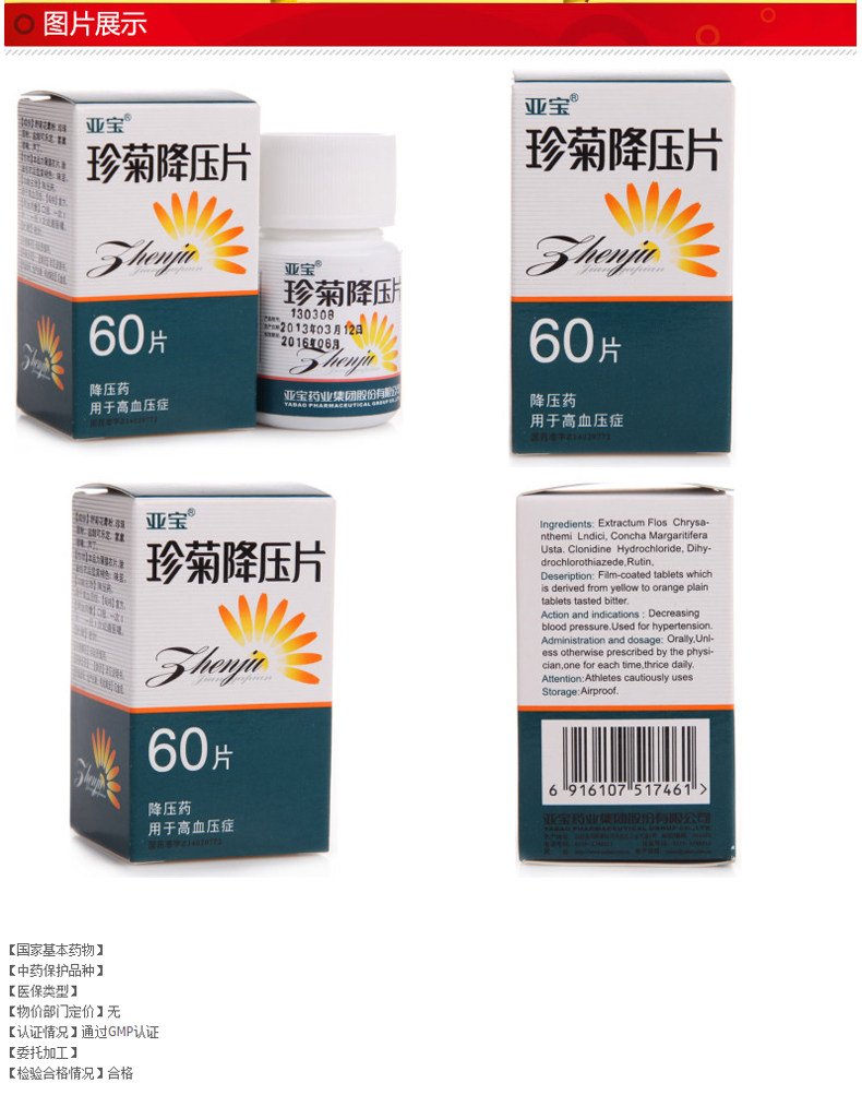 Препарат "Чженьцзю Цзян'я Пянь" (Zhenju Jiangya Pian) зниження артеріального тиску, антигіпертензивніНемає в наявності