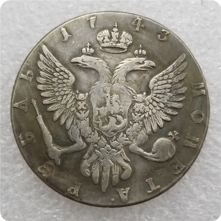 Срібної монети Рубль зразка 1743 роки. Цей різновид монет чеканився в епоху правління імператриці Єлизавети Петровни, Московський монетним двором.