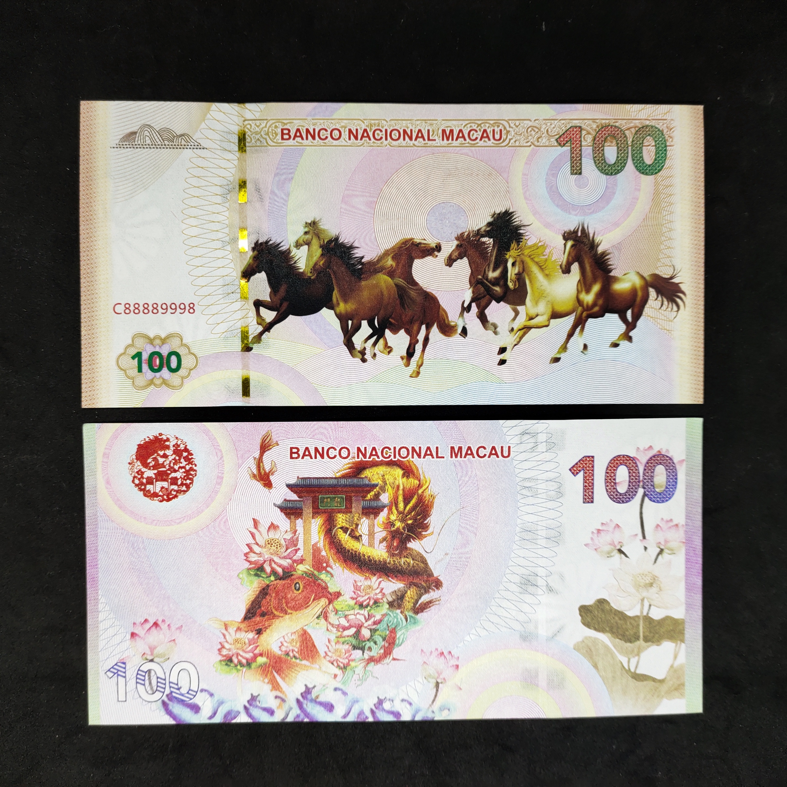 Банкнота Пам'ятна щасливі 100 монет Макао «54ський гороскоп - Рік Коноді», колекційна UNC