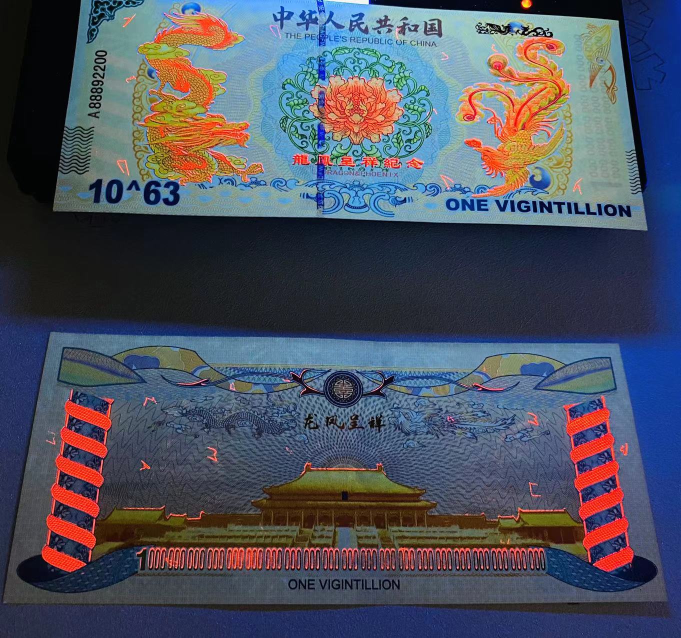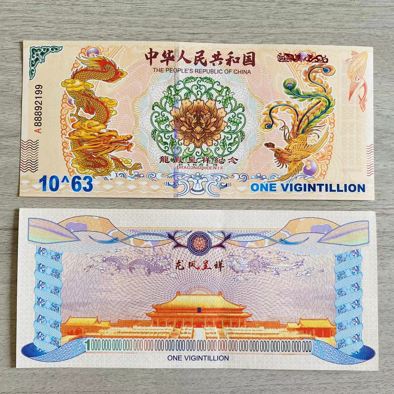 Банкнота Пам'ятна Флуоресцентний пам'ятний ваучер Дракон і Фенікс 10 ^ 63, пам'ятна декоративна некомерційна банкнота