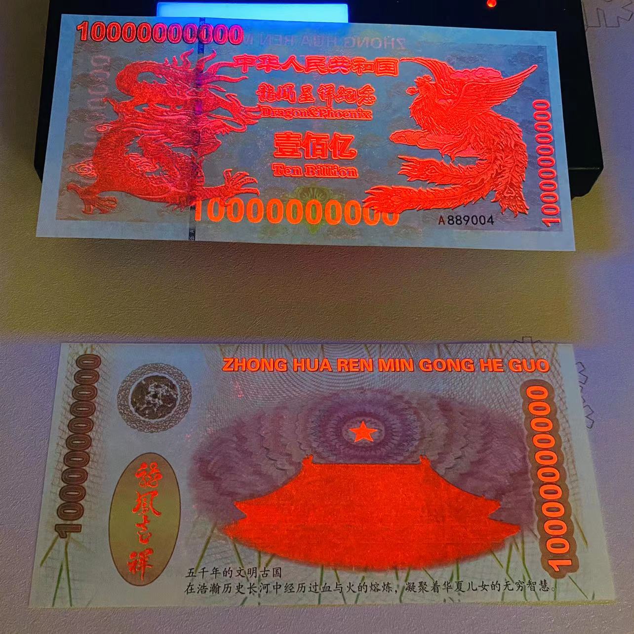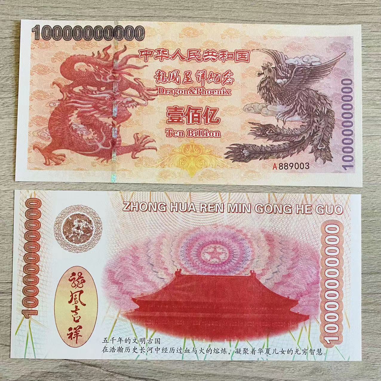 Банкнота Пам'ятна Флуоресцентна Дракон і Фенікс Ten Billion UNC, колекційна.