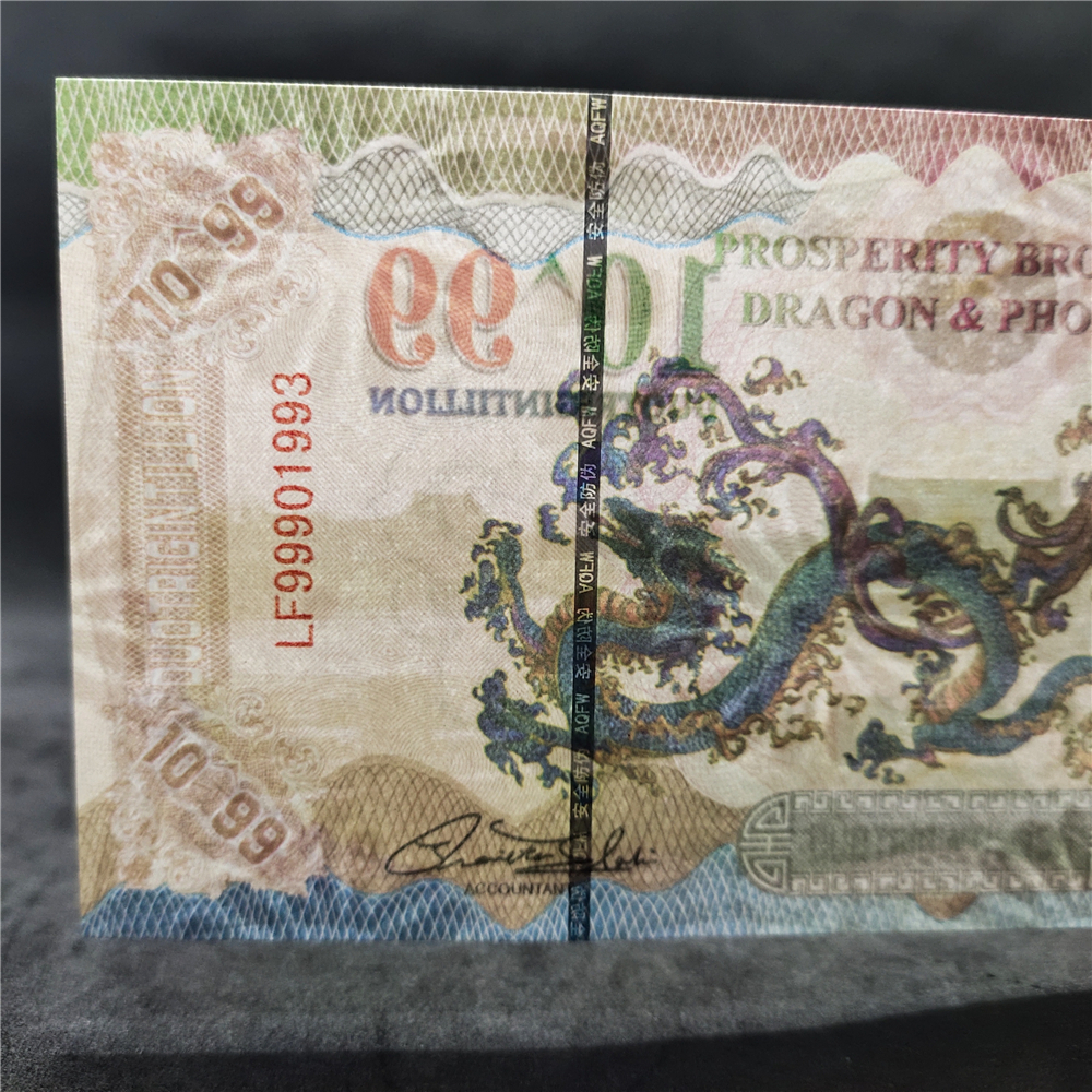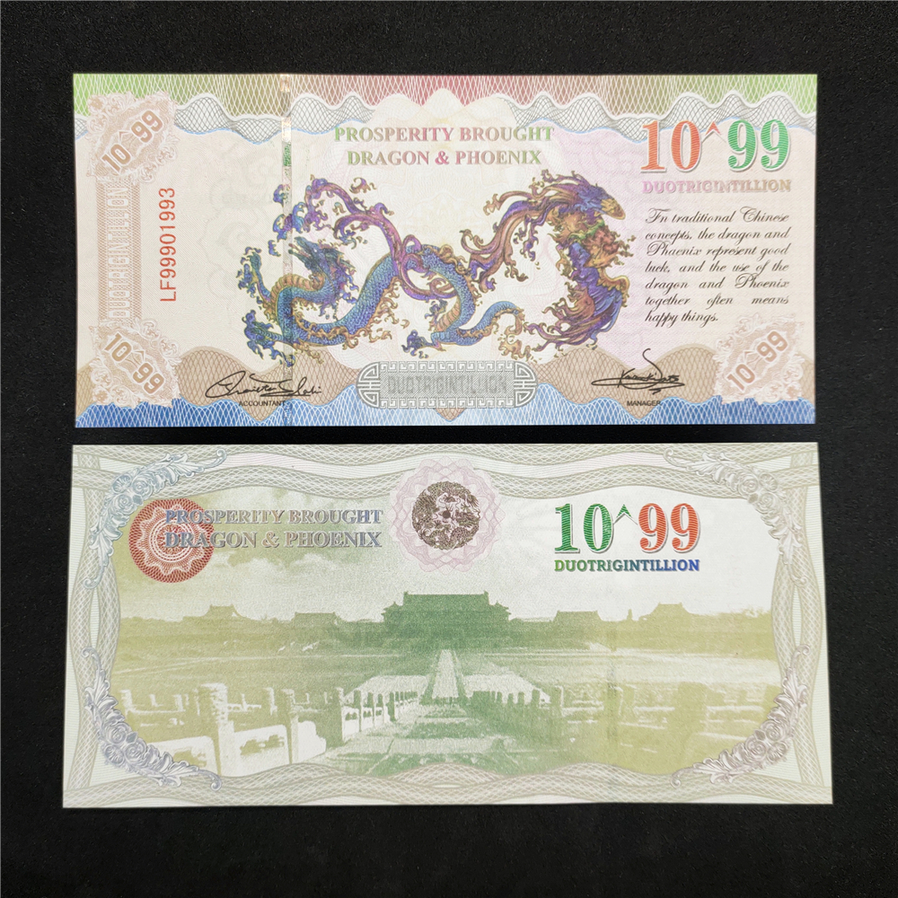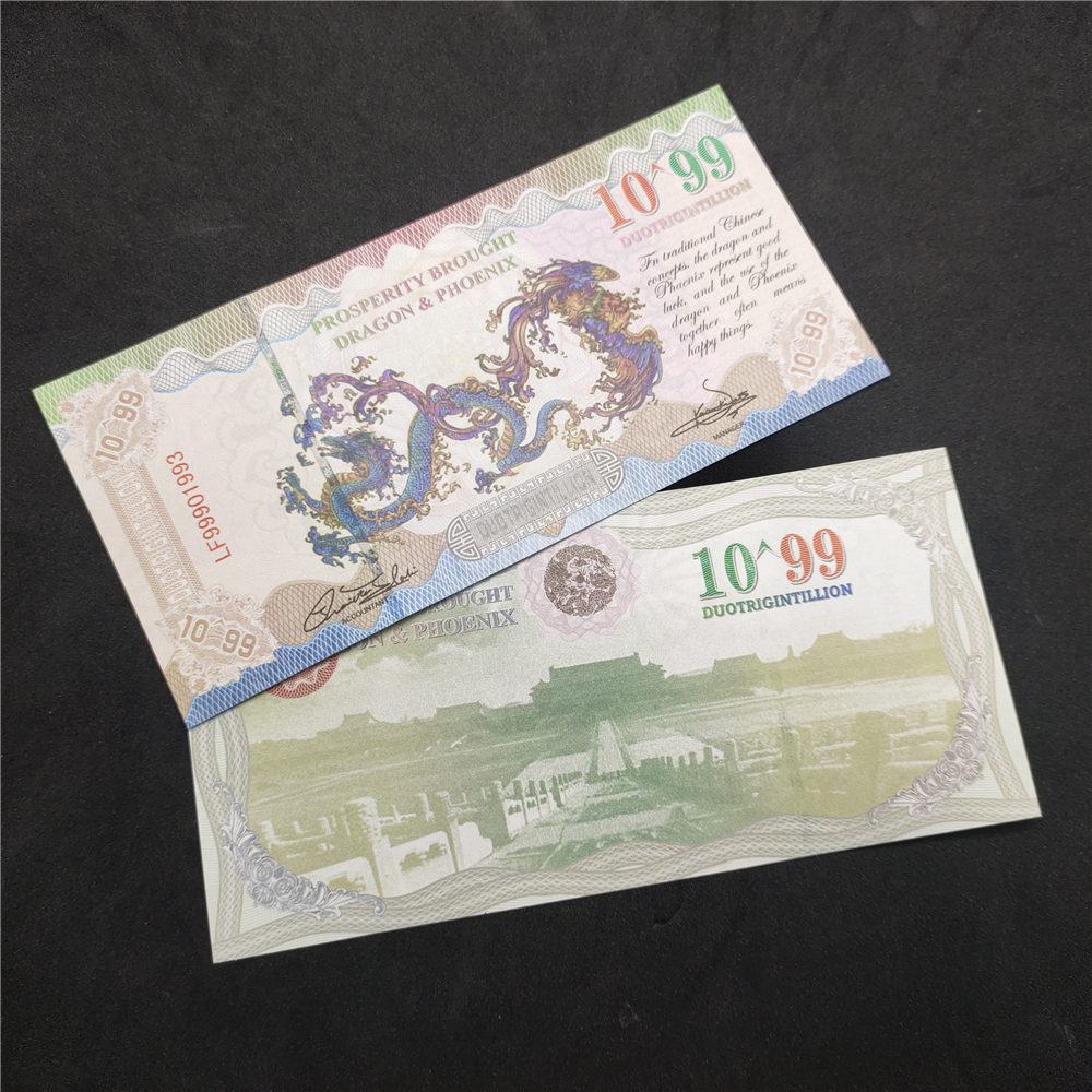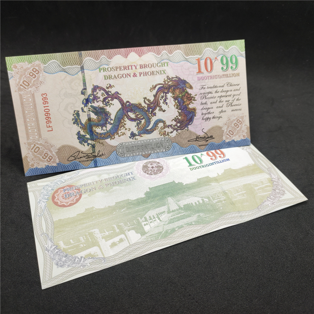 Банкнота Пам'ятна Флуоресцентний пам'ятний ваучер Дракон і Фенікс 10 ^ 99, пам'ятна декоративна некомерційна банкнота