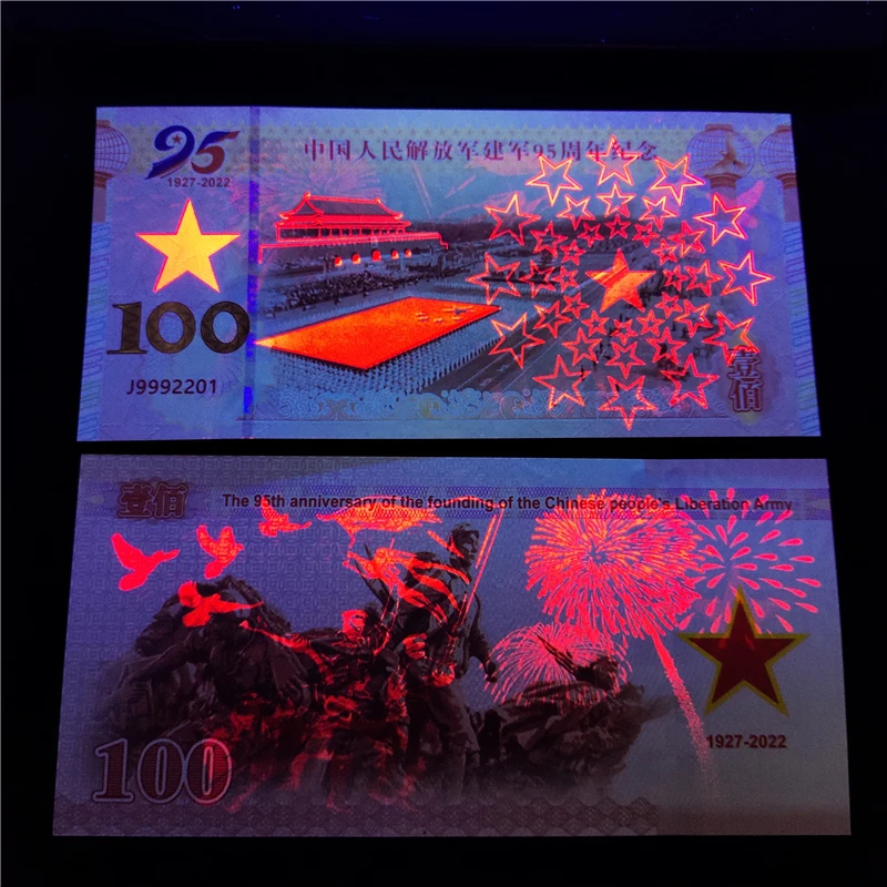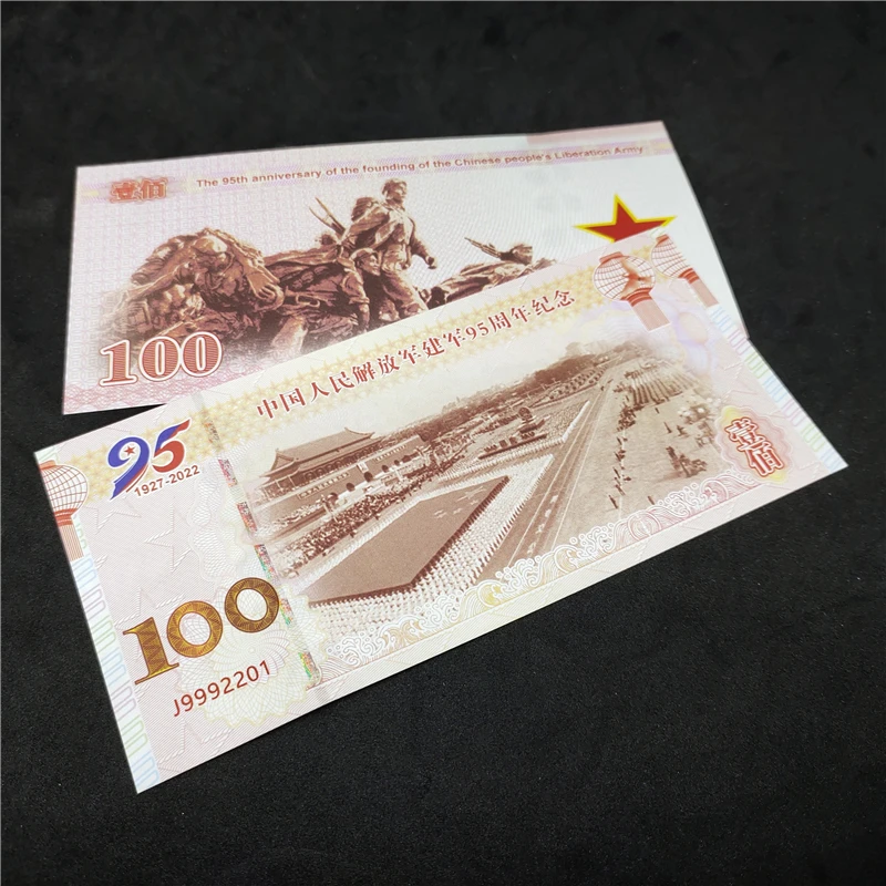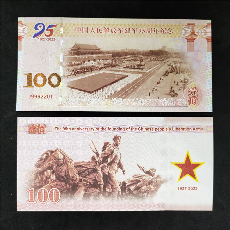 Банкнота Пам'ятна Флуоресцентна на честь 95-річчя заснування армії КНР" номінал 100. UNC,.