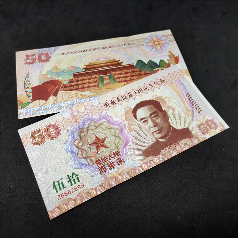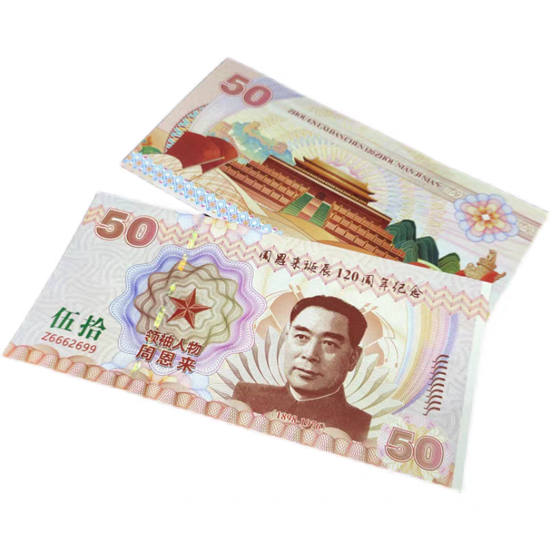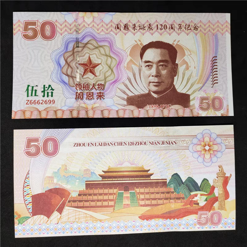 Банкнота Пам'ятна Флуоресцентна присвячена 120-річчю з дня народження Чжоу Еньла, колекційна.
