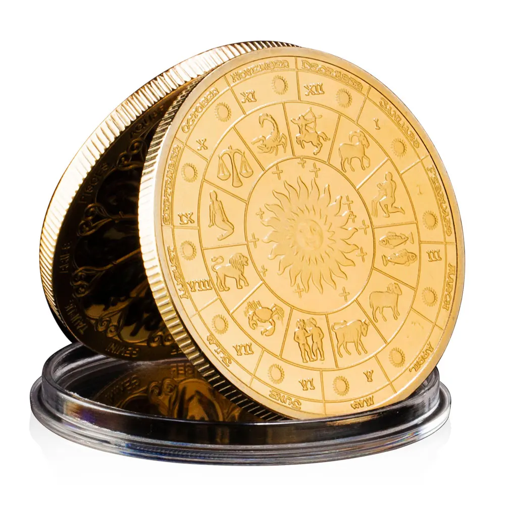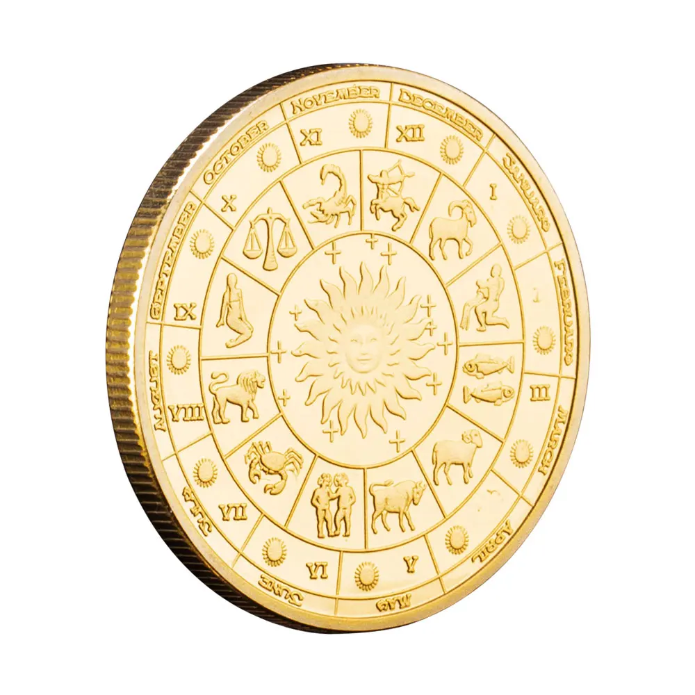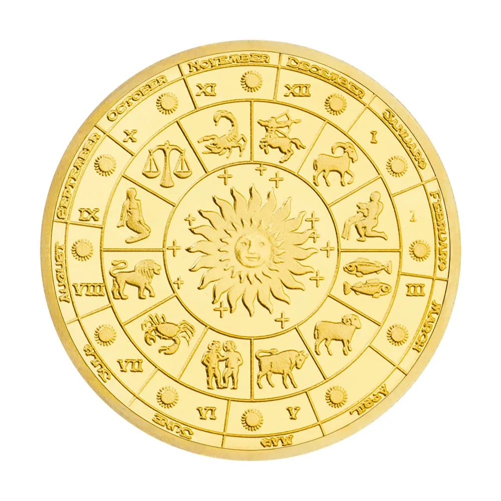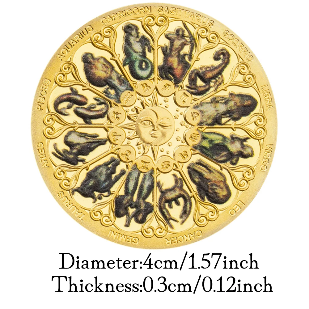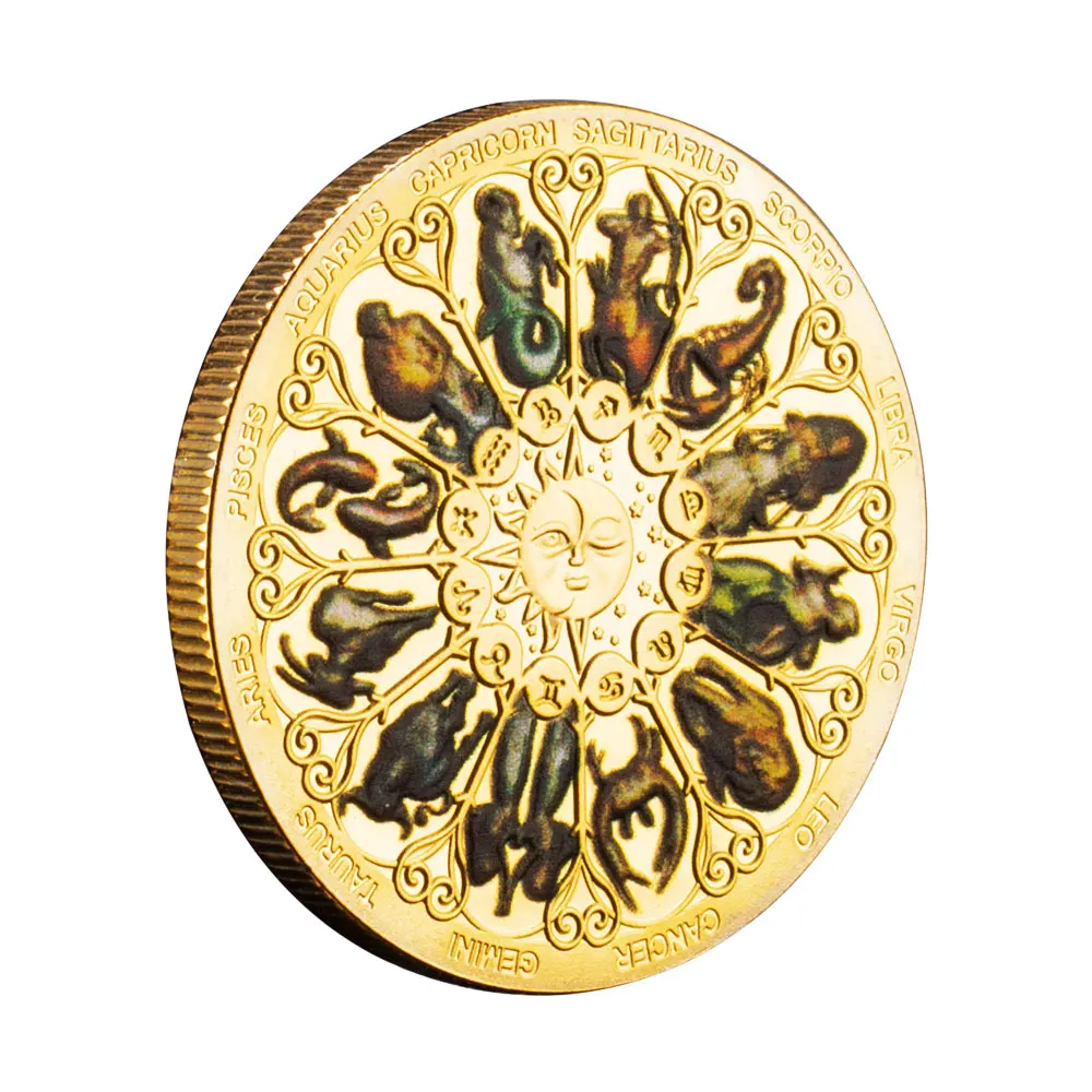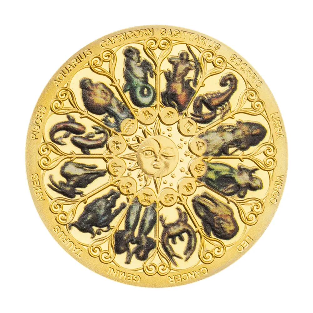 Пам'ятна кольорова монета з дванадцятьма сузір'ями, монети бажань, Сонце, Місяць, золото