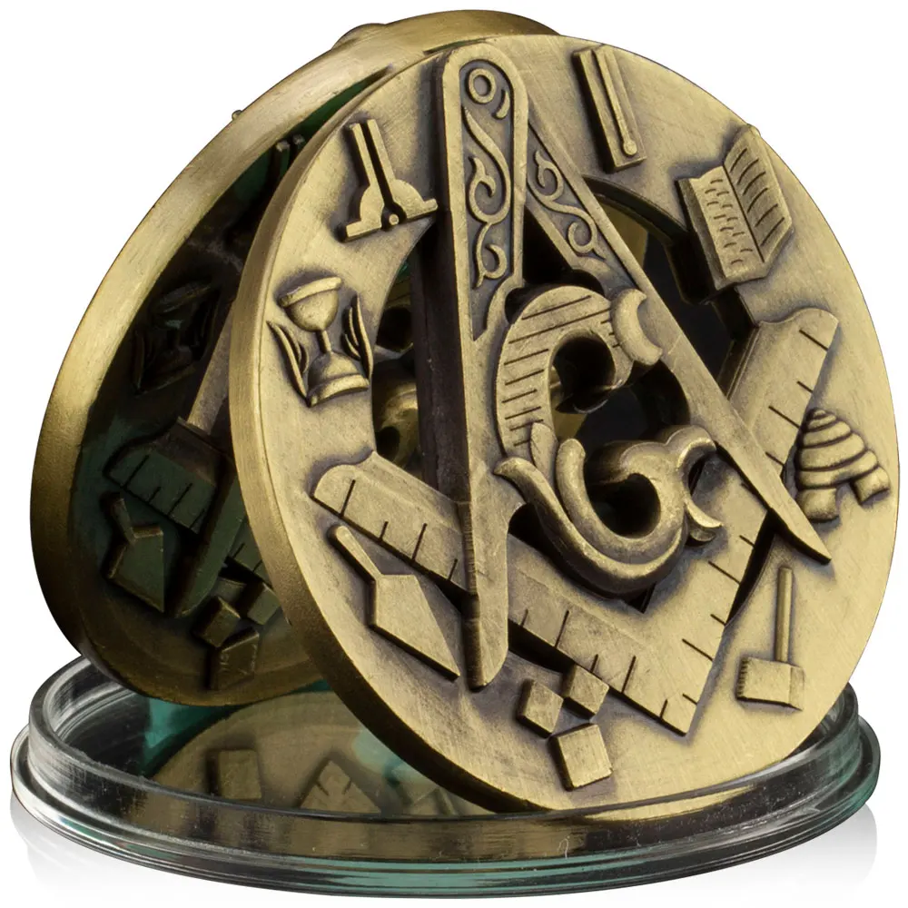 Сувенірна монета Вільних мулярів Масонів "freeMason" рельєфна. бронза