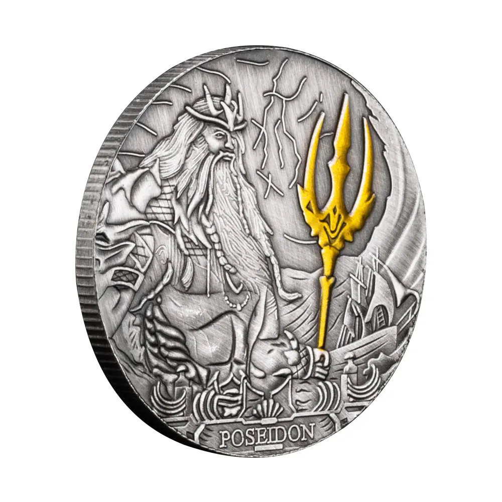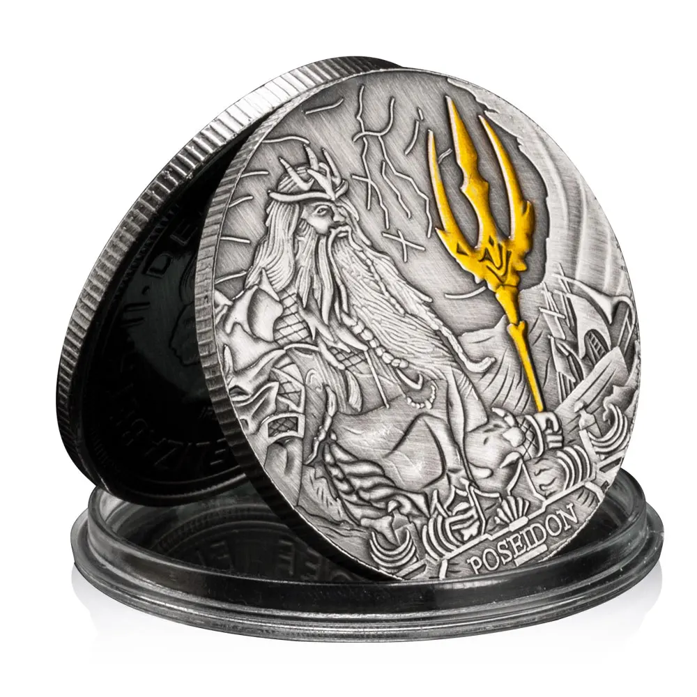 Посейдон — могутній бог, що керує над морем, водними хвилями та стихіями. Згідно з грецькими міфами, цей олімпійський бог керує водами за допомогою величного трезуба, який у цьому дизайні позолочений.