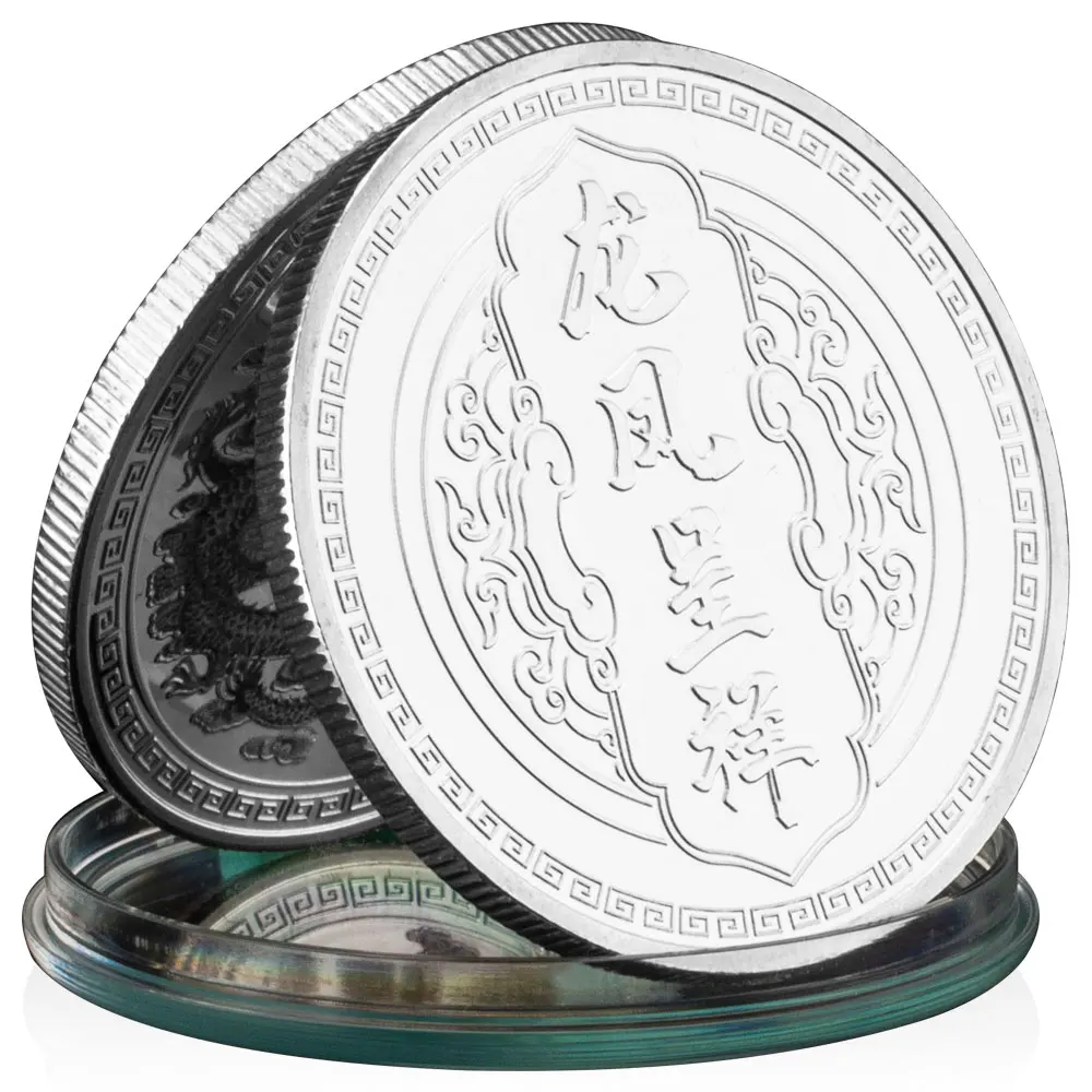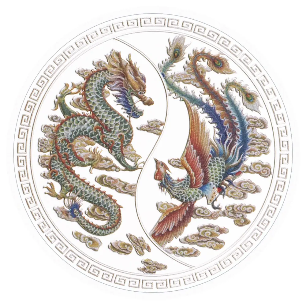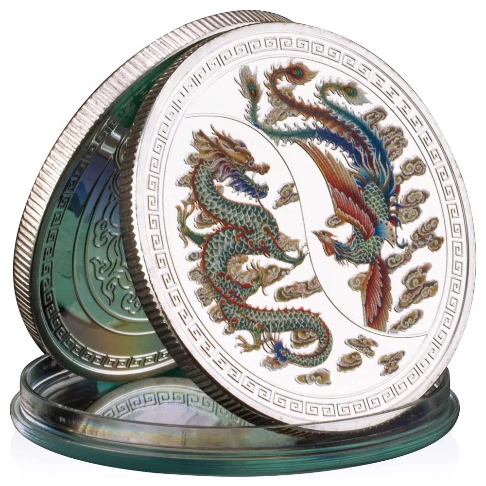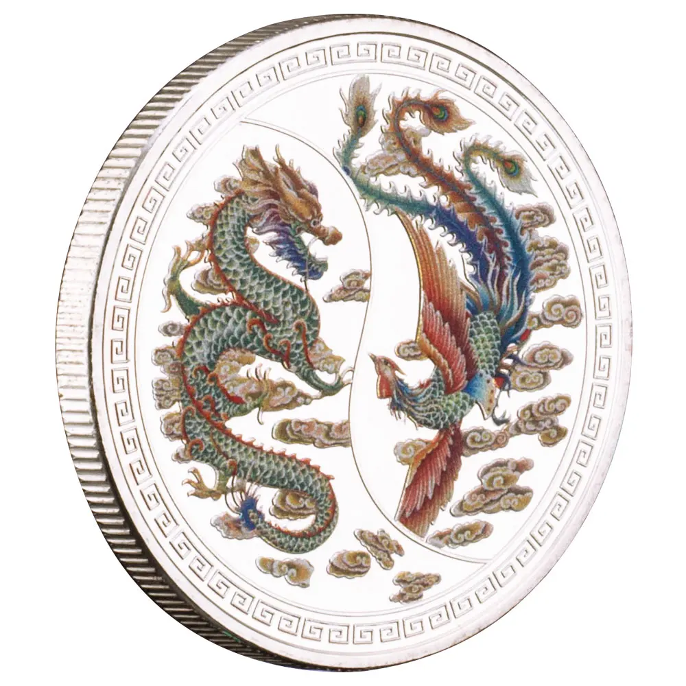 Сувенірна кольорова монета " Дракон і фенікс" пам'ятні монети. сильвер