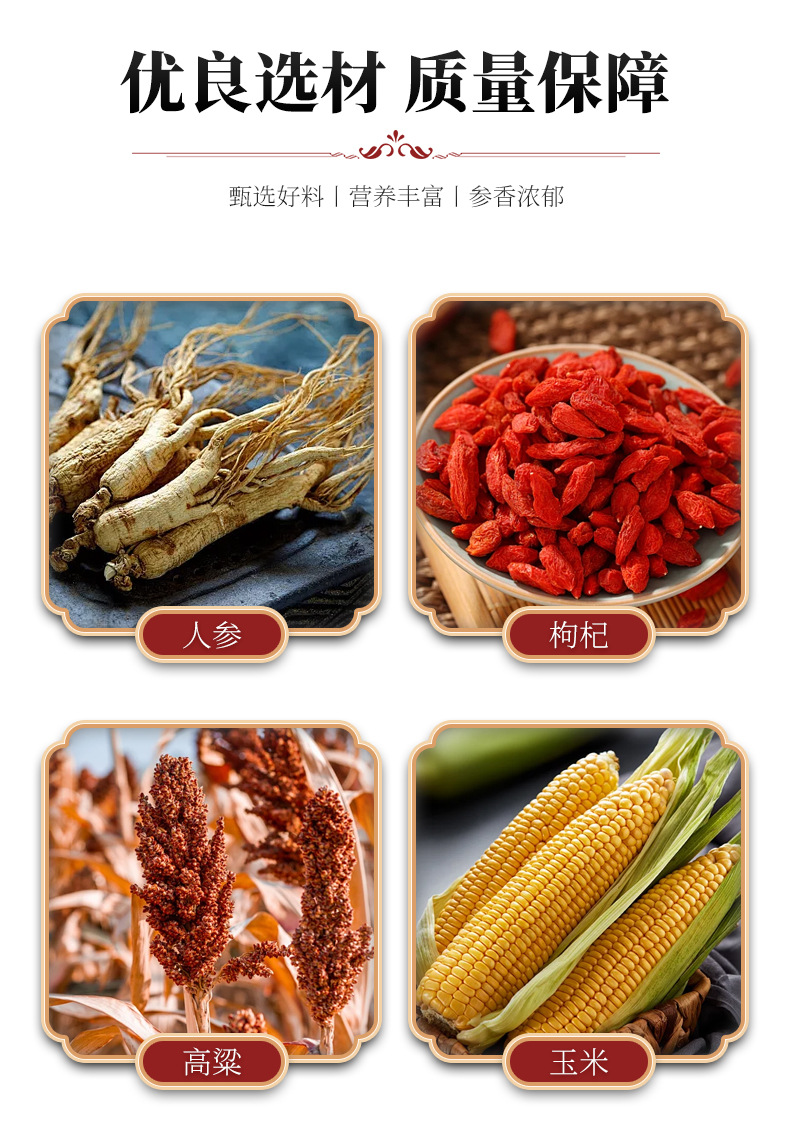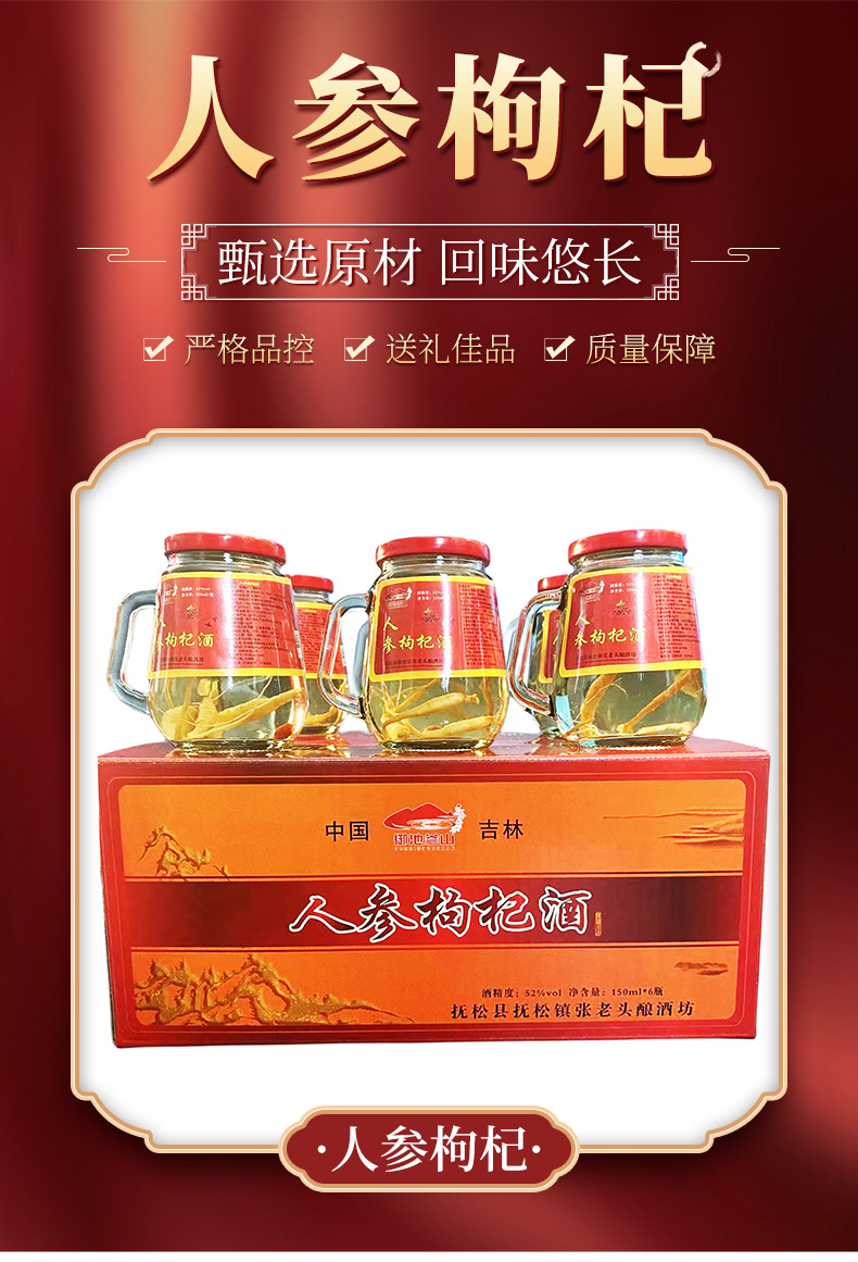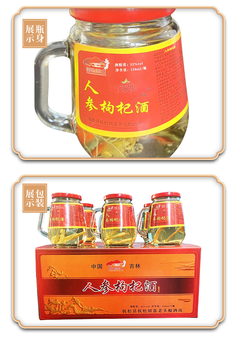 До складу настоянки входять лише два компоненти: власне сік женьшеню, лайчі, корінь женьшеню, у подрібненому стані (у якому міститься безліч вітамінів і корисних елементів) і 50% спирту.