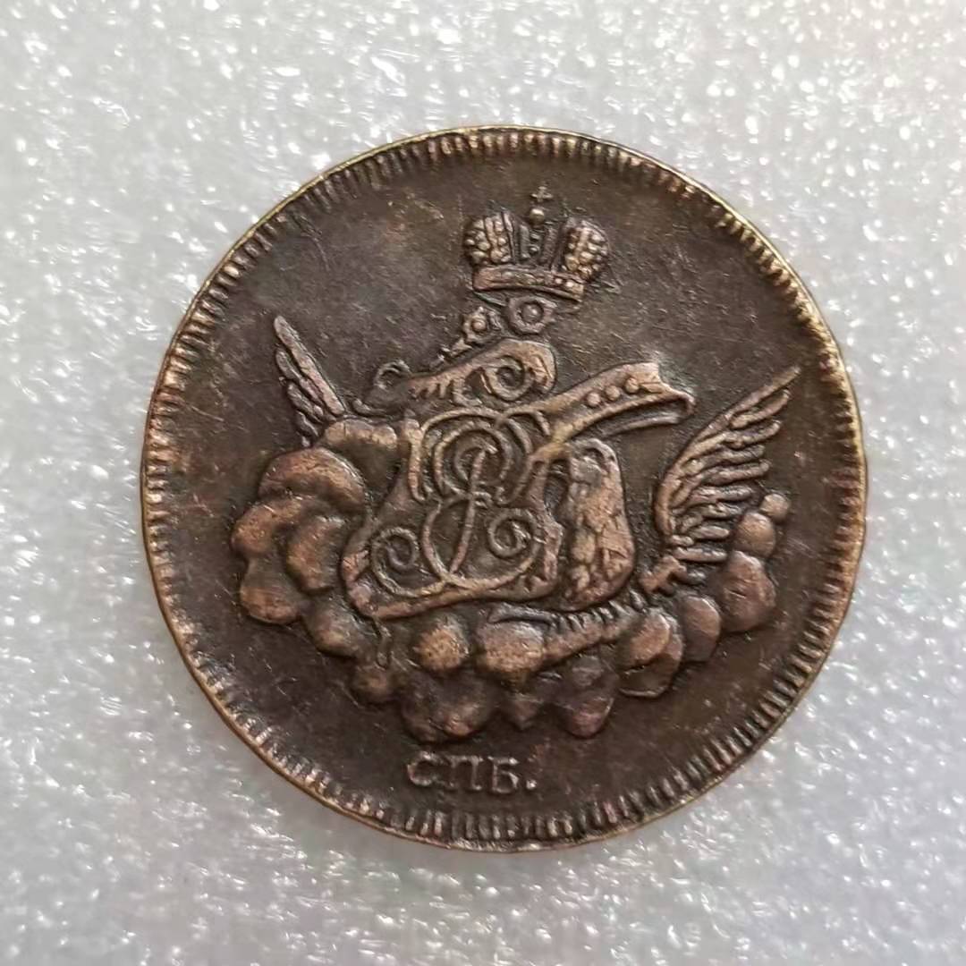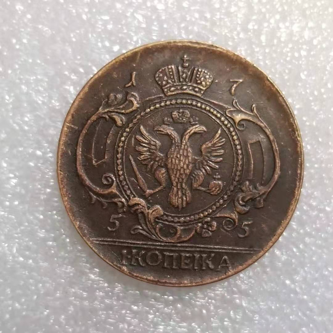 Пробна монета 1 копейка 1755 хмарна СПБ. сувенір. зображення двоголового орла в круглій рамці.