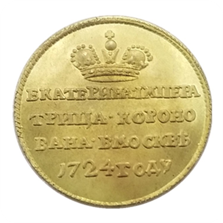 Пам'ятний жетон На честь коронації Катерини I 1724 року, Петро I самклав корону на Катерину. Коронування проходило за укладеними традиціями. В Москві був влаштований гарматний серют і світилася ілюмінація, всюди роздавляли срібні та золоті жетони
