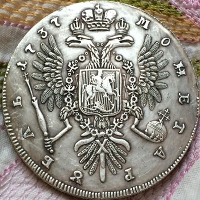 Рубль 1737 року (період імператриці Анни Івановни) чеканав зі срібла 802 проби. Точний наклад монет не відомий. Редакція за каталогами: Біткін #55 (R1); еллян.; Конрос #56/11.