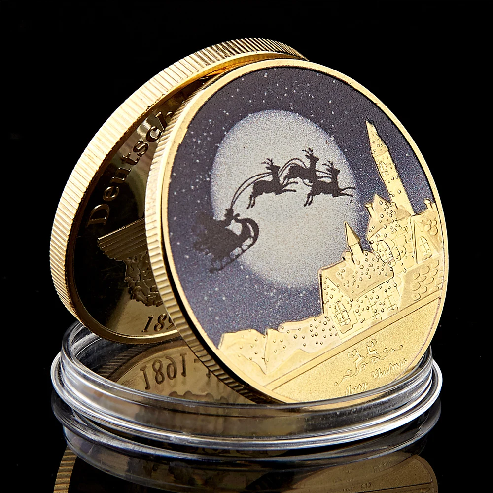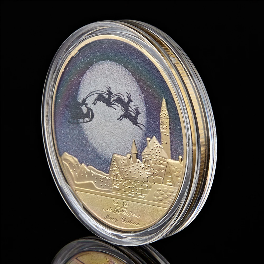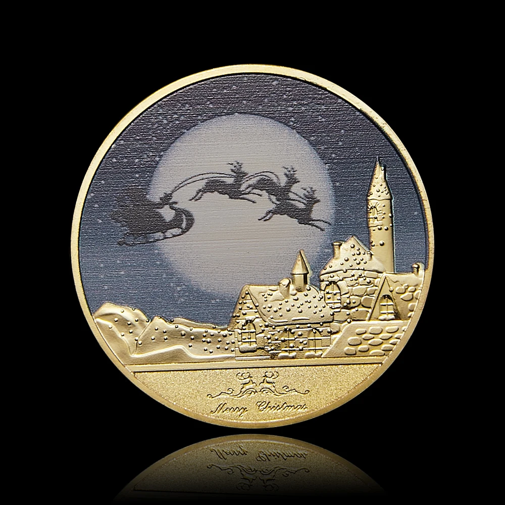Монета сувенір "Щасливого Різдва!" з Оленями. голд подарунок на Новий рік і Різдво