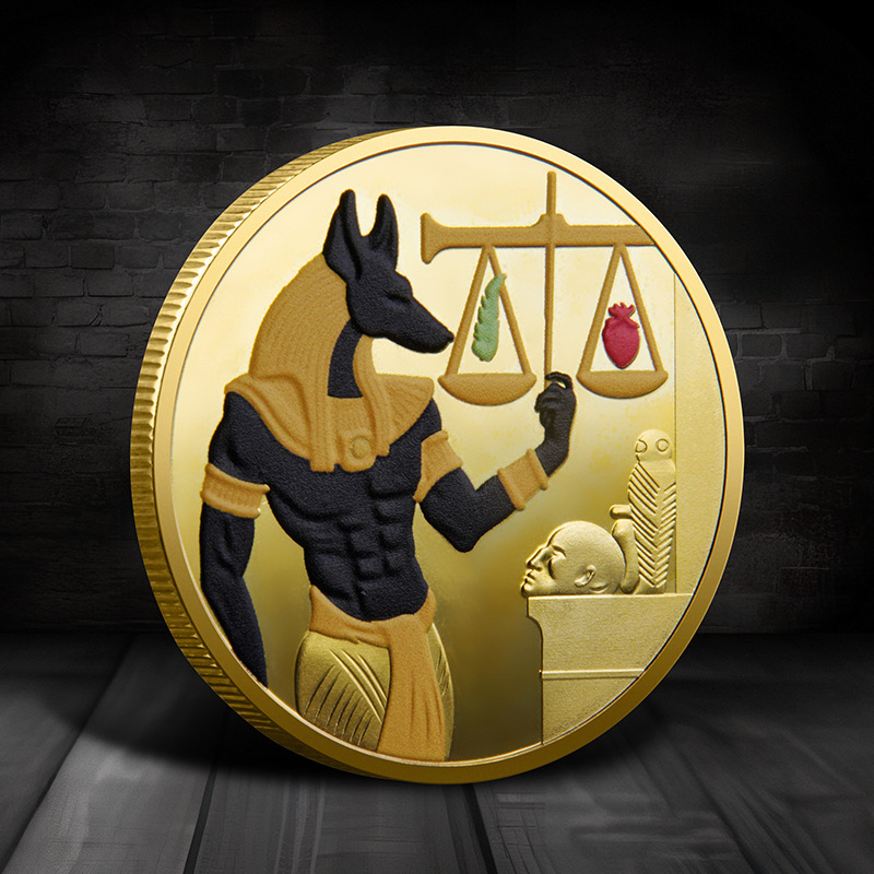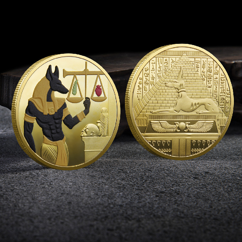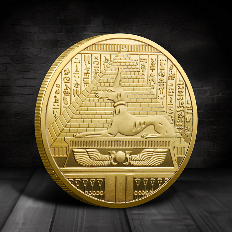 Пам'ятна монета в гаманець Єгипетський бог Анубіс кольорова піраміда.