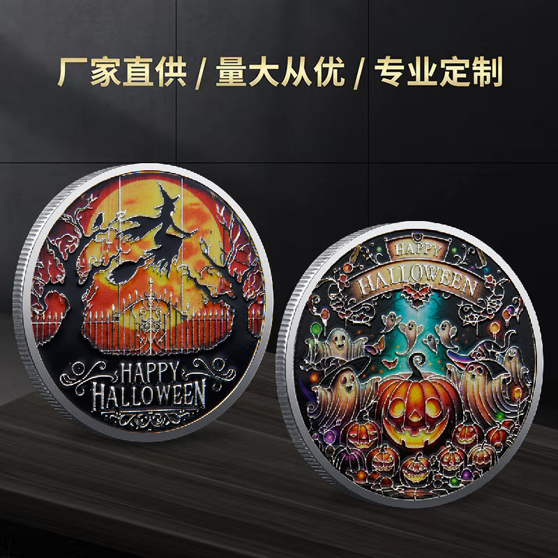 Монета сувенір із гарбузом "Щасливого Хелловіна" сильвер. талісманом подарунок на Гелловін