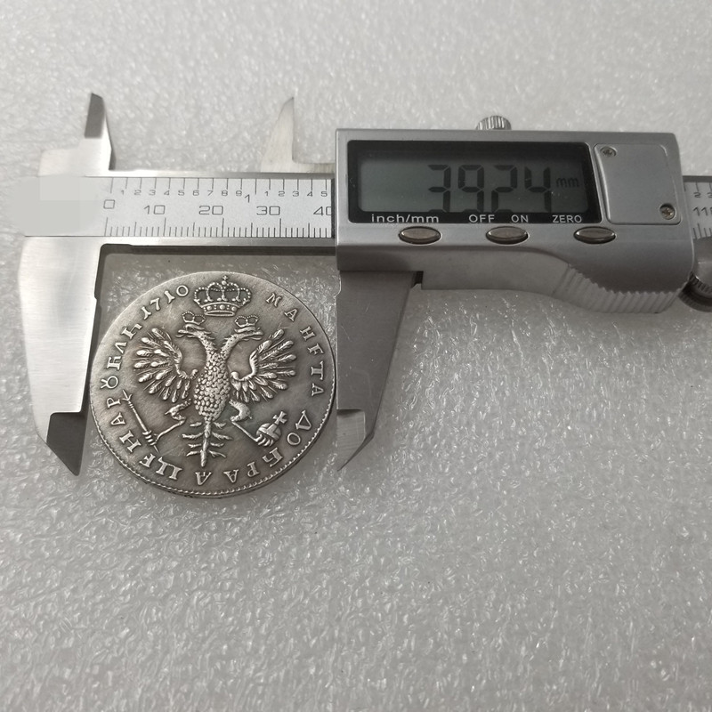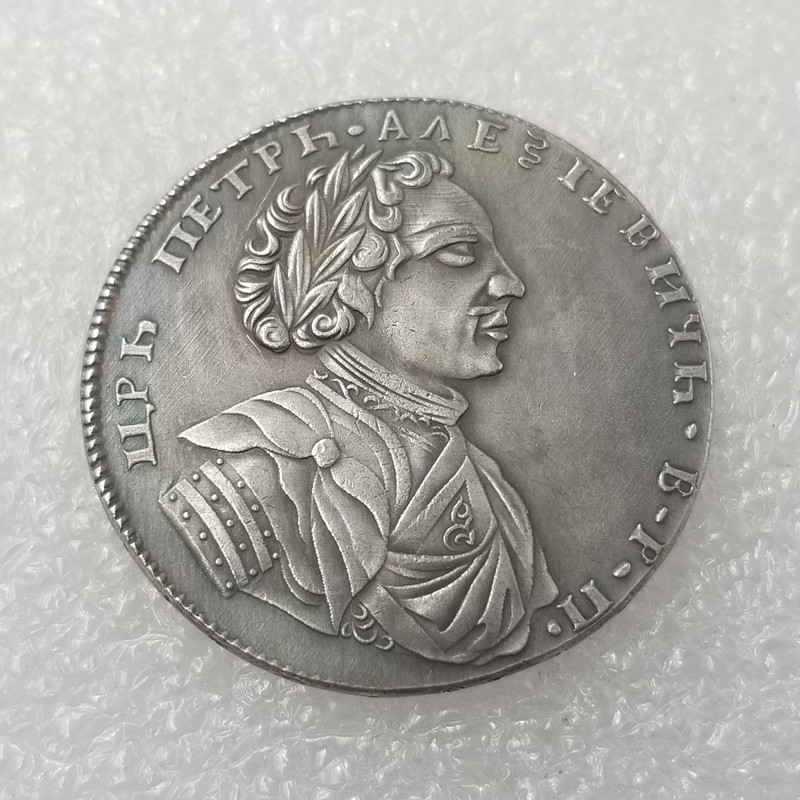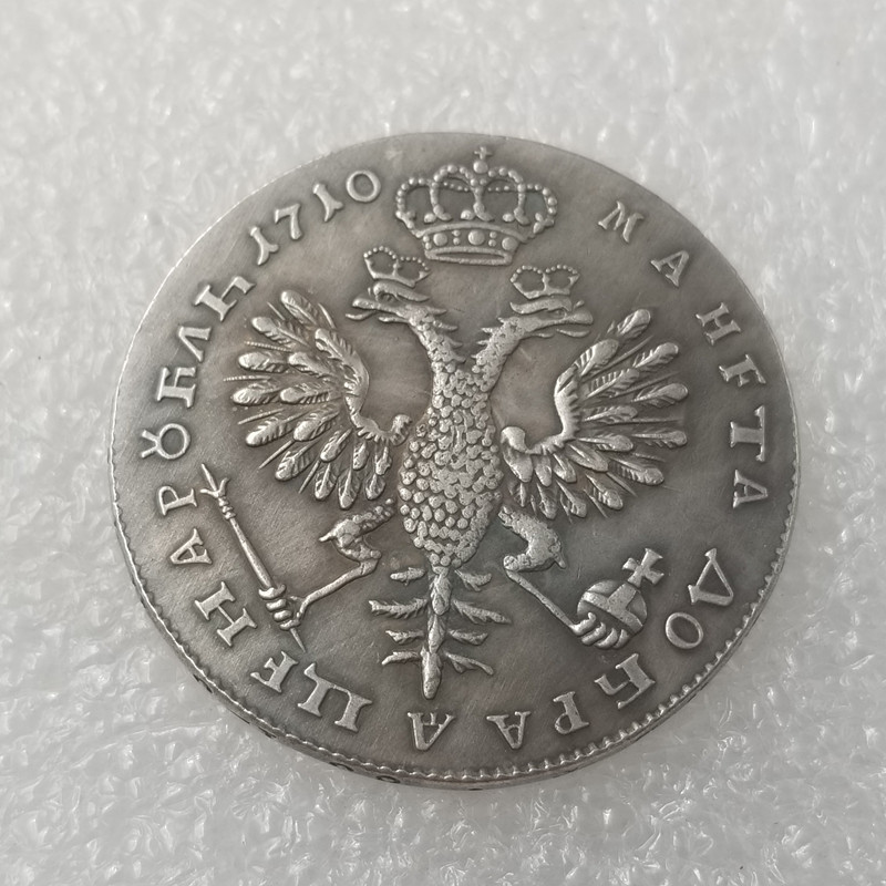 Якісна сувенірна монета епохи правління Петра 1 — Рубль 1710 року. На лицьовій стороні монети відтінений портрет царя в профіль, на зворотному — двоголовий орел із державою й скіпетром. За зовнішнім окружністю відчеплений напис МАНЕТА ДОБРА ЦЕНА РУБЛЬ 1710.