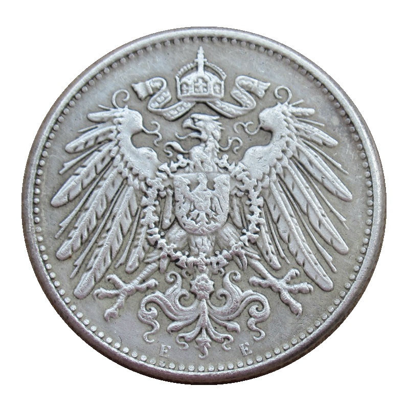Срібна монета номіналом 1 марка з позначенням «F» випускається Штутгартським монетним двором у 1891-1916 роках під час Імператора II. Ці монети були в обігу по всій Європі в 1900-х роках. Монети також чокали в Берліні — «A», Мюнхені — «D», Мульденхітені — «E», Карлсруе — «G», Гамбурзі — «J». Вільгельм II (Фрічрих Вільгельм Віктор Альберт Прусський) — останній імператор (кайзер) Німецької імперії та король Пруссії з 15 червня 1888 року по 9 листопада 1918 року. Син принца та згодом імператора Німеччини Пінського та Вікторії Великобританської.
