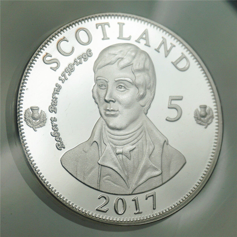 На лицьовій стороні монети Портрет сера Роберта Бернса. Напис: