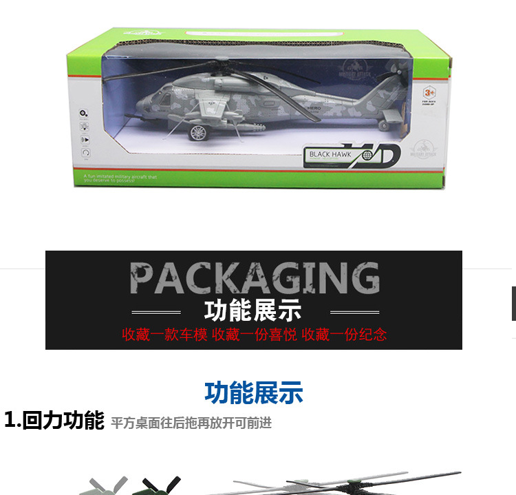 - Високоякісні іграшки — виготовлені з екологічно чистого пластику та металу, надійні та зручні в руці. Прекрасна іграшка-модель вертольота Black Hawk 1:72 з реалістичними звуками та вогнями, що обертаються пропелерів. Просте керування, приберіть теорію.