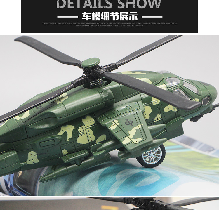 Модель вертольота з озброєнням зі сплаву в масштабі 1:32 може активувати функцію вмикання світла та звуку.