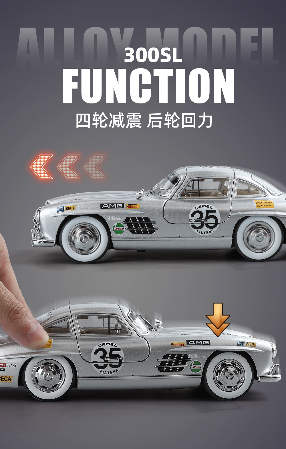 Ця модель автомобіля Mercedes 300 SL у масштабі 1:24 стане ідеальним предметом колекціонування для шанувальників розкішних автомобілів і тих, хто шукає інтерактивну та високодеталізовану модель.