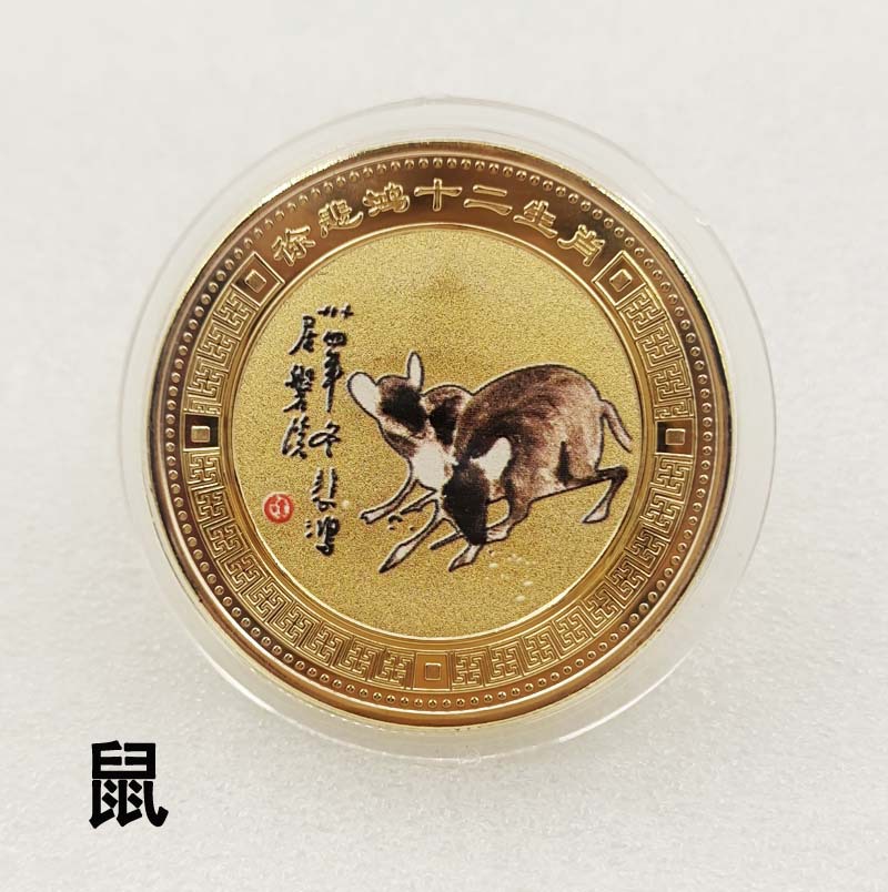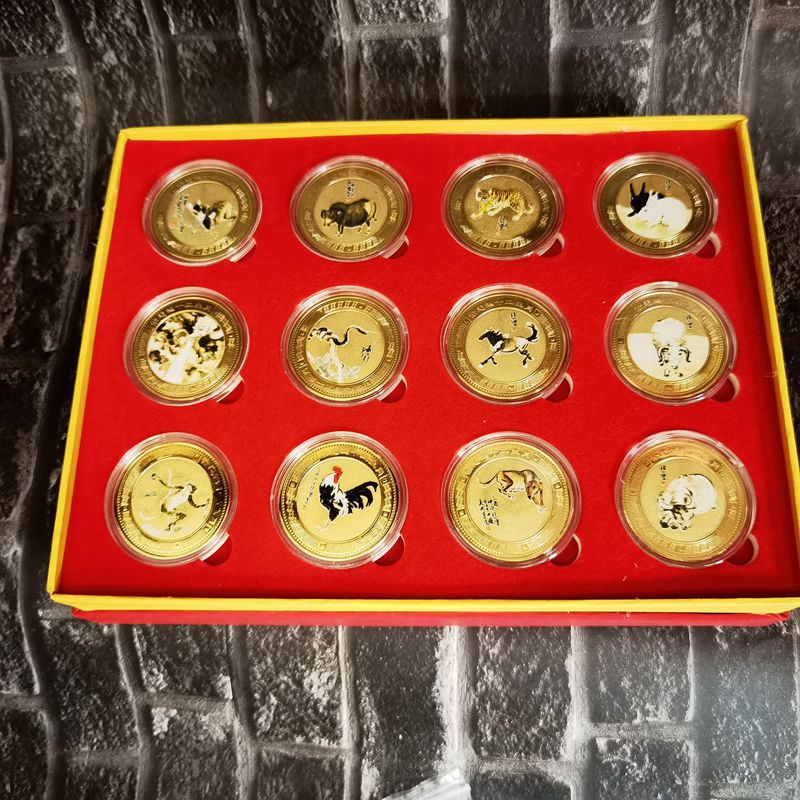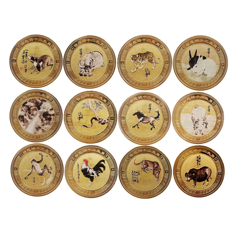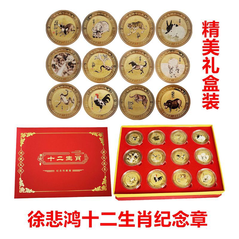 Подарунковий набір з 12 пам'ятних монет медалей Зодіакі Зодіака стиль Сюй Бейхуна, 40*1.5мм Голд (у коробці)